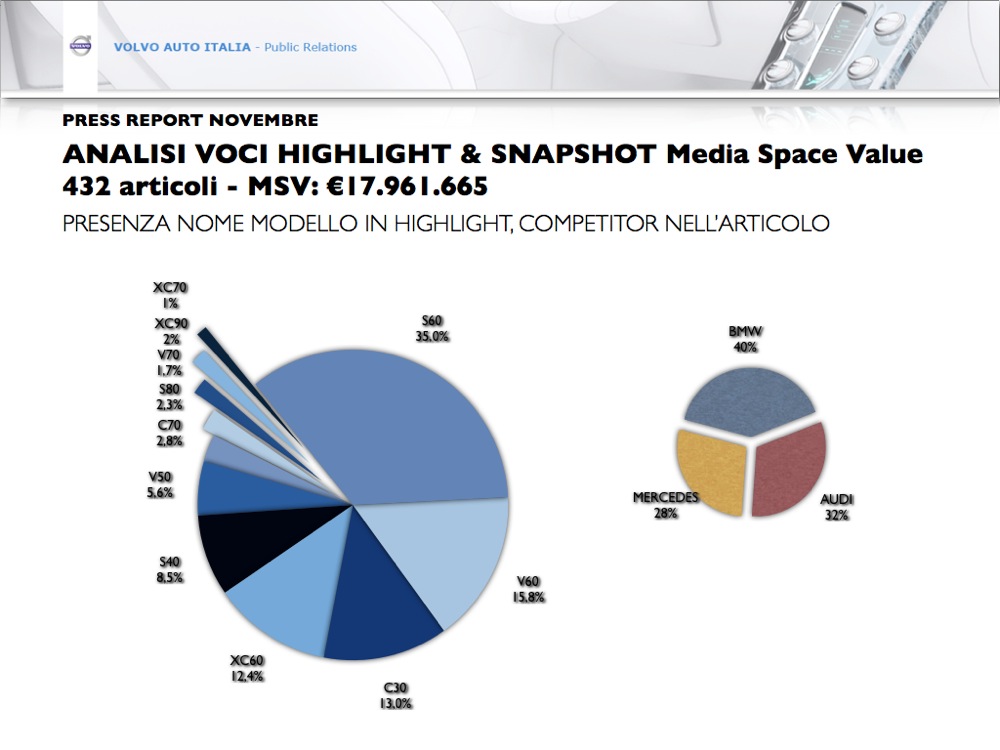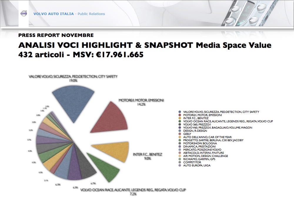 CORPORATE - VOLVO XC60 - VOLVO XC90 - VOLVO CUP - VOLVO OCEAN RACE - BOLOGNA MOTORSHOW - CAR OF THE YEAR - VOLVO V60 - MERCATO ITALIA - AIR MOTION |