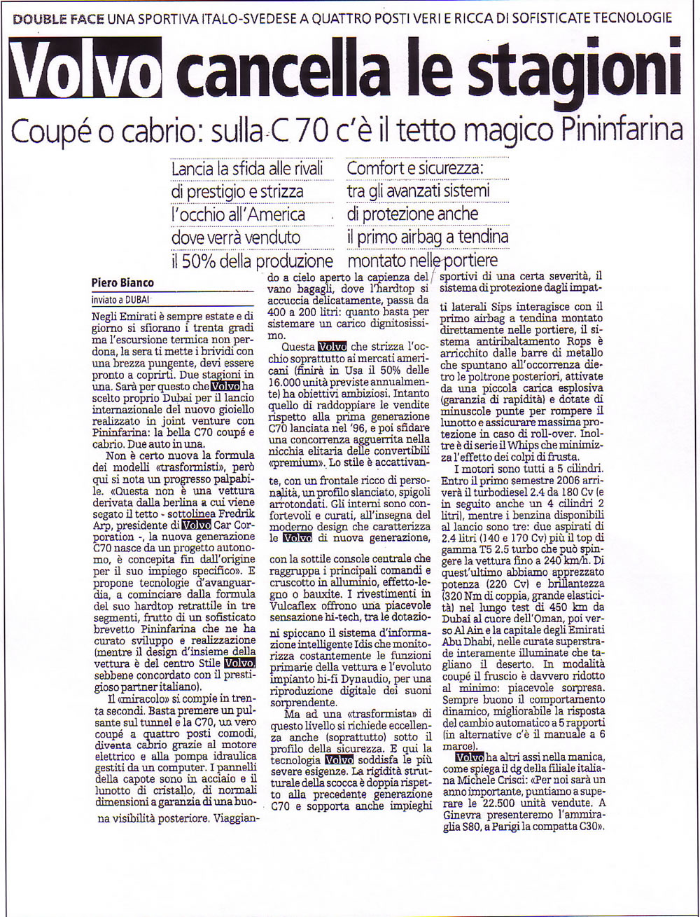 C70 CONVERTIBLE - LA STAMPA - 2006, 26.1