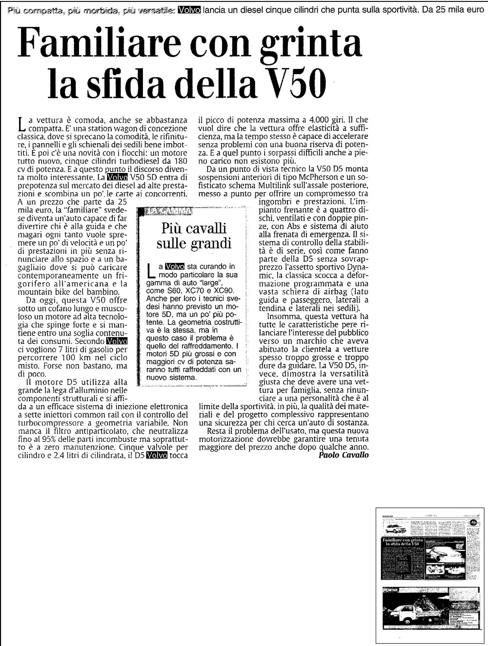 | VOLVO S40-V50 D5 180CV - IL SECOLO XIX - 2006, 04, 14 | |||||