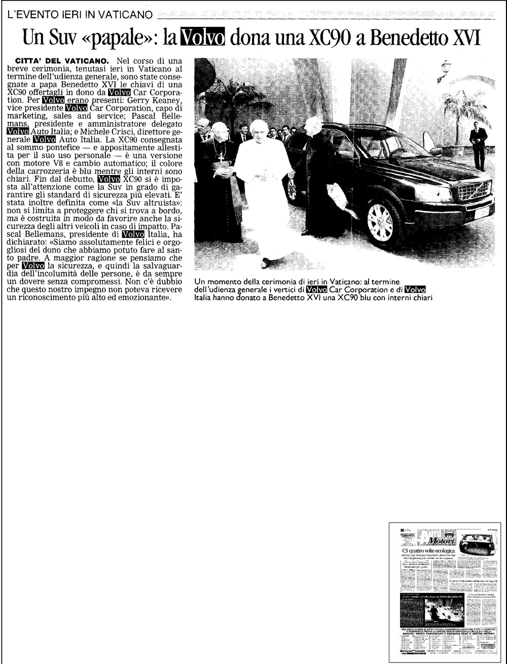 | VOLVO CORPORATE, BENEDETTO XVI - LA PROVINCIA PAVESE - 2006, 06, 29 | |||||