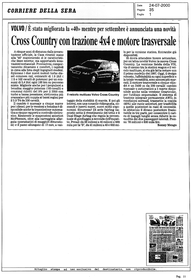 LA VOLVO V70 XC CROSS COUNTRY SUI GIORNALI... |