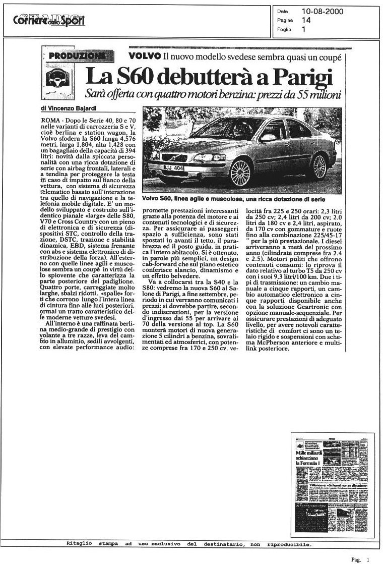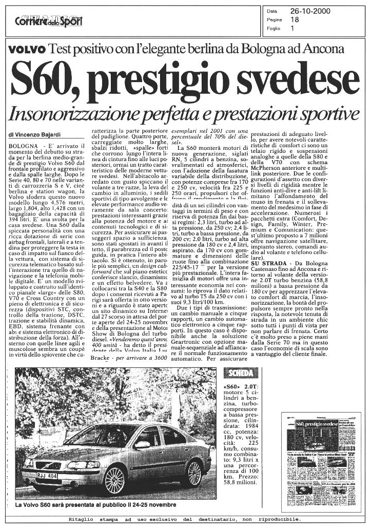LA VOLVO S60 SUI GIORNALI...