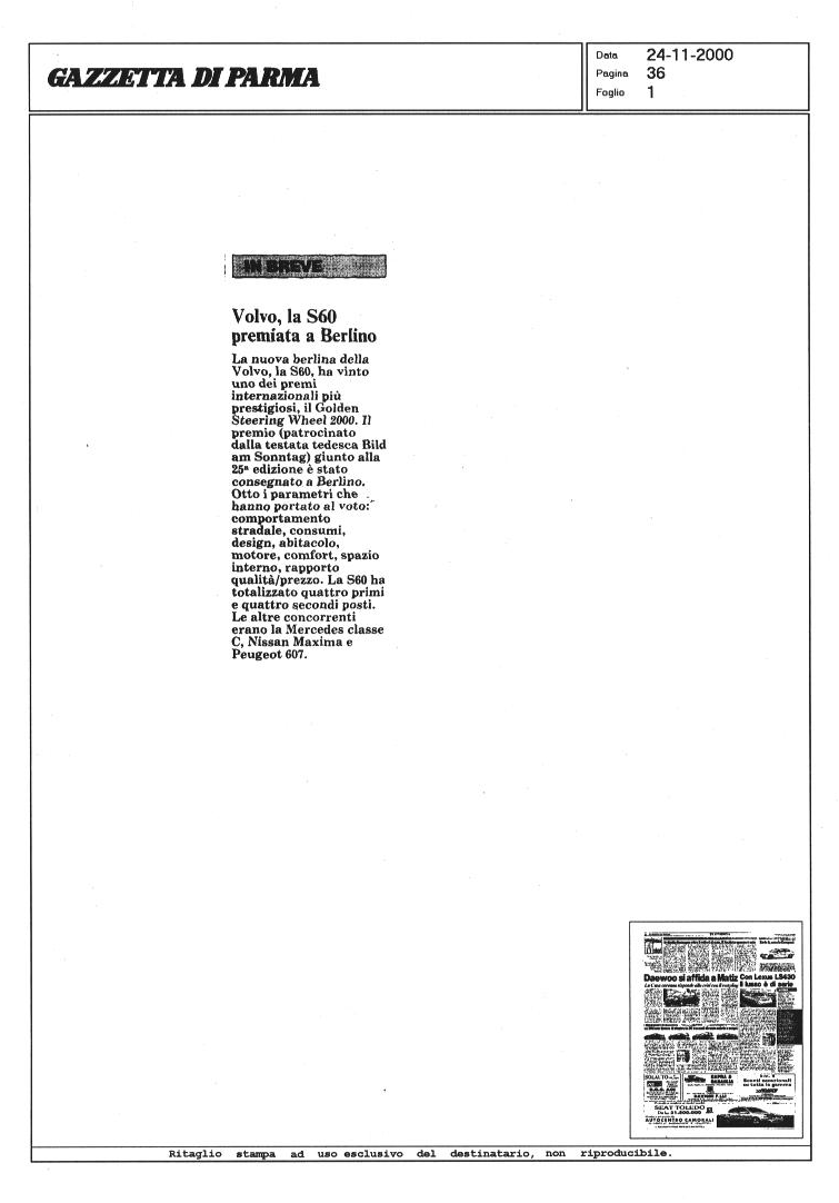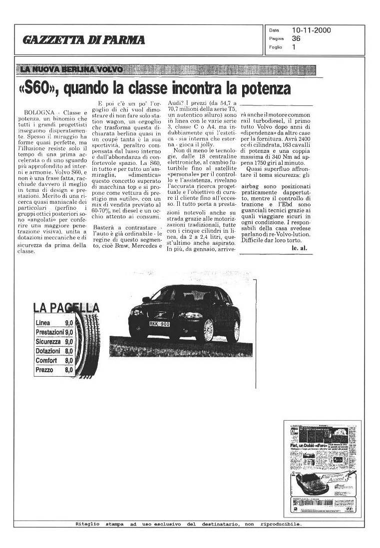 LA VOLVO S60 SUI GIORNALI...