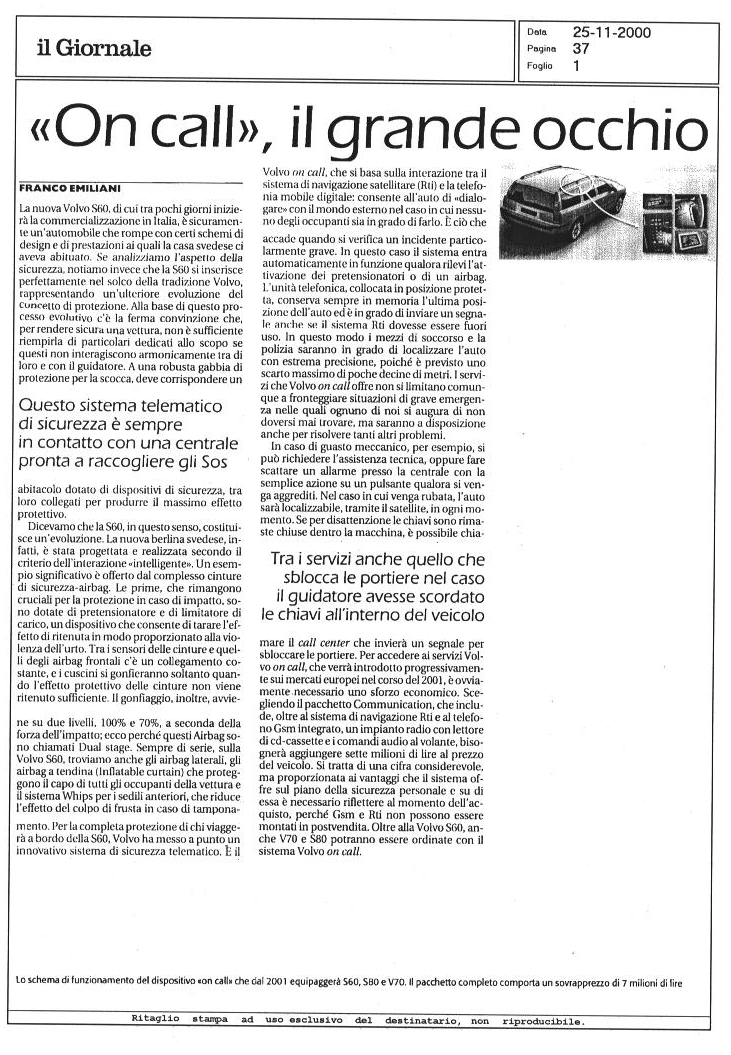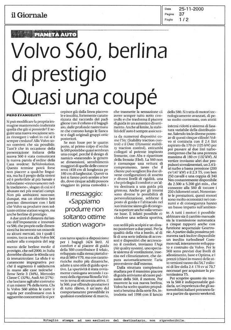 LA VOLVO S60 SUI GIORNALI...