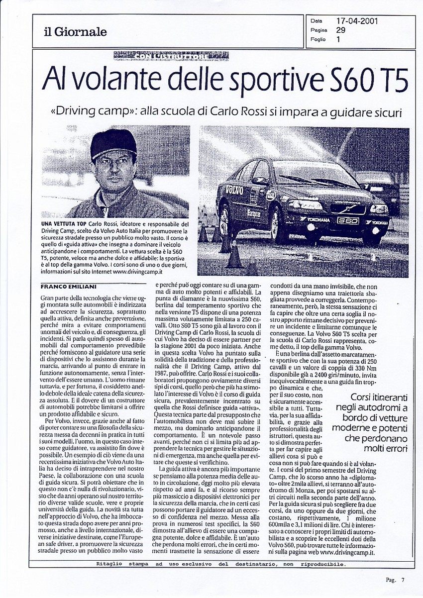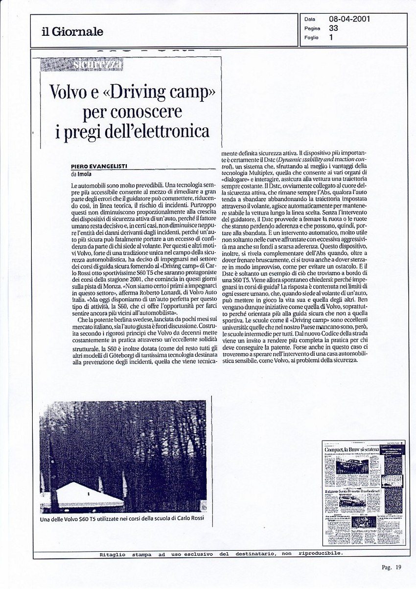 LA VOLVO E IL DRIVING CAMP SUI GIORNALI... |