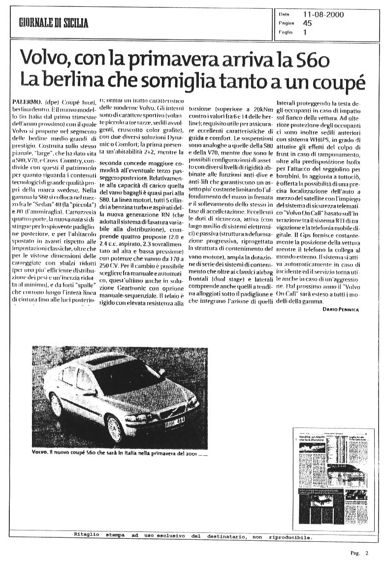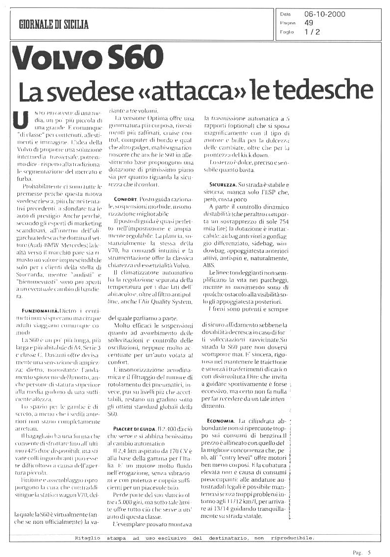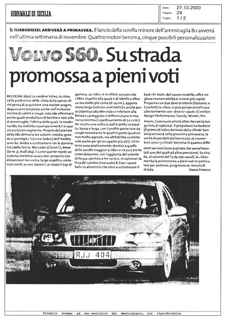 | L'analisi numerica della Volvo S60 | I TOPTEN | La Volvo V70 XC Cross Country | La Rassegna TV |
