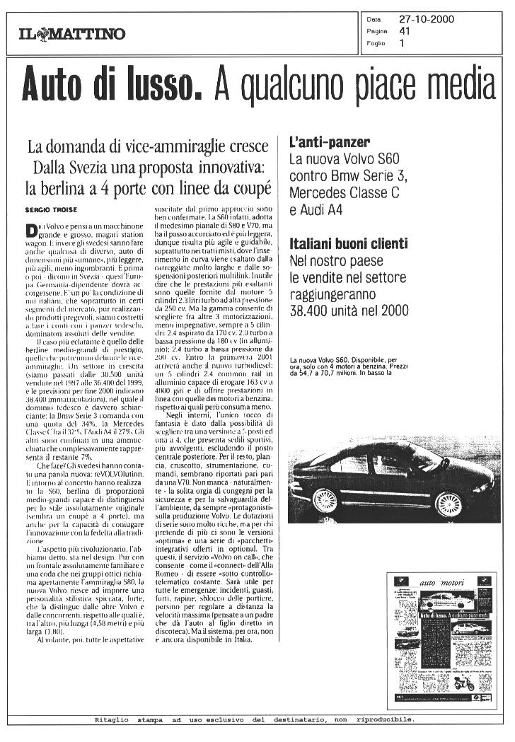 LA VOLVO S60 SUI GIORNALI...