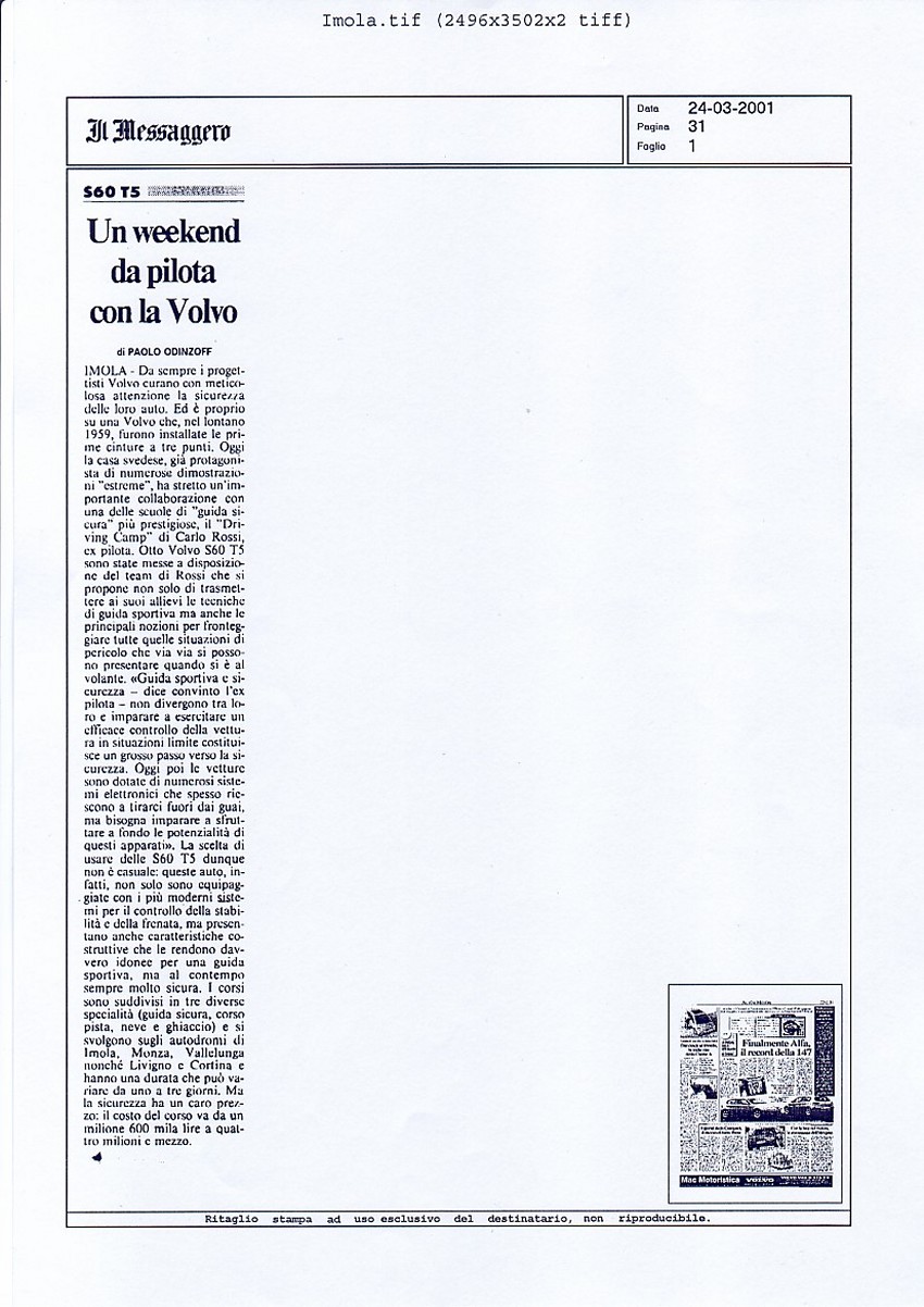 LA VOLVO E IL DRIVING CAMP SUI GIORNALI... |