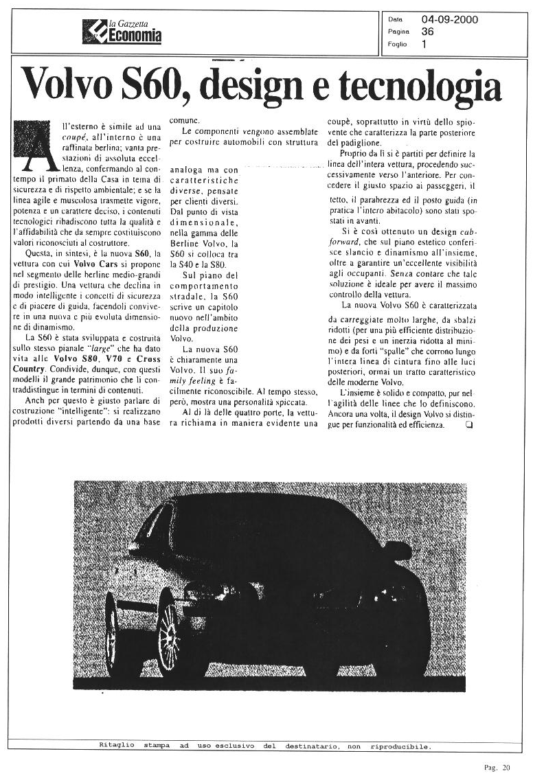 LA VOLVO S60 SUI GIORNALI...
