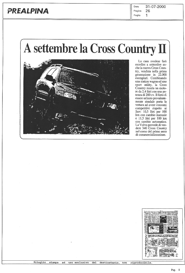 LA VOLVO V70 XC CROSS COUNTRY SUI GIORNALI... |