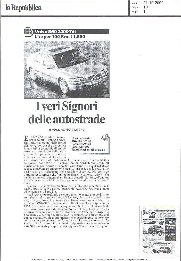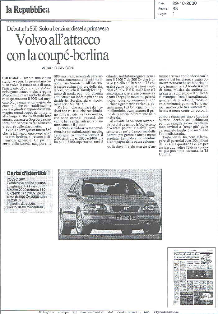 LA VOLVO S60 SUI GIORNALI...