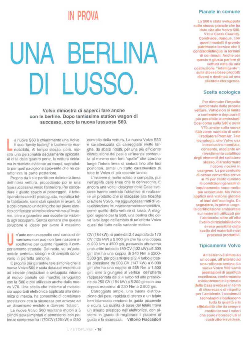 LA VOLVO S60 SUI GIORNALI...