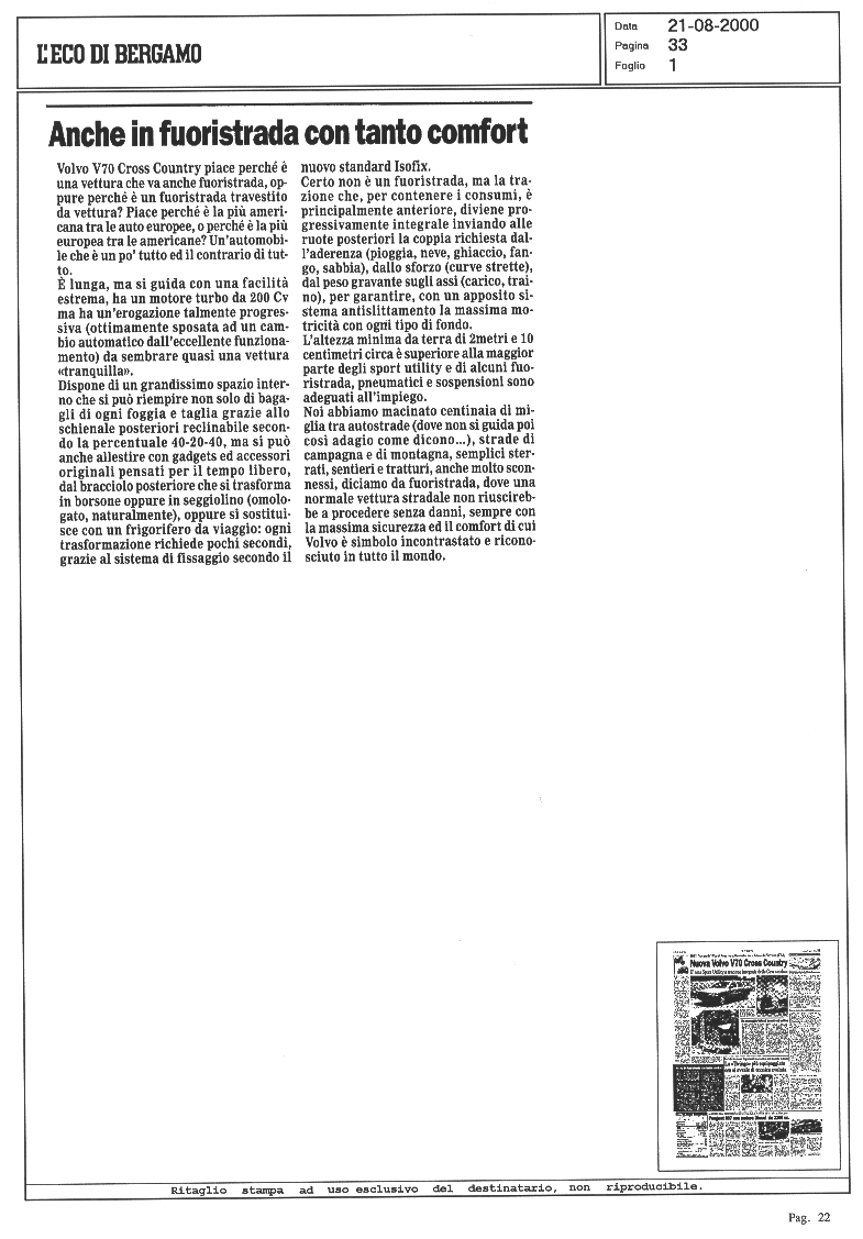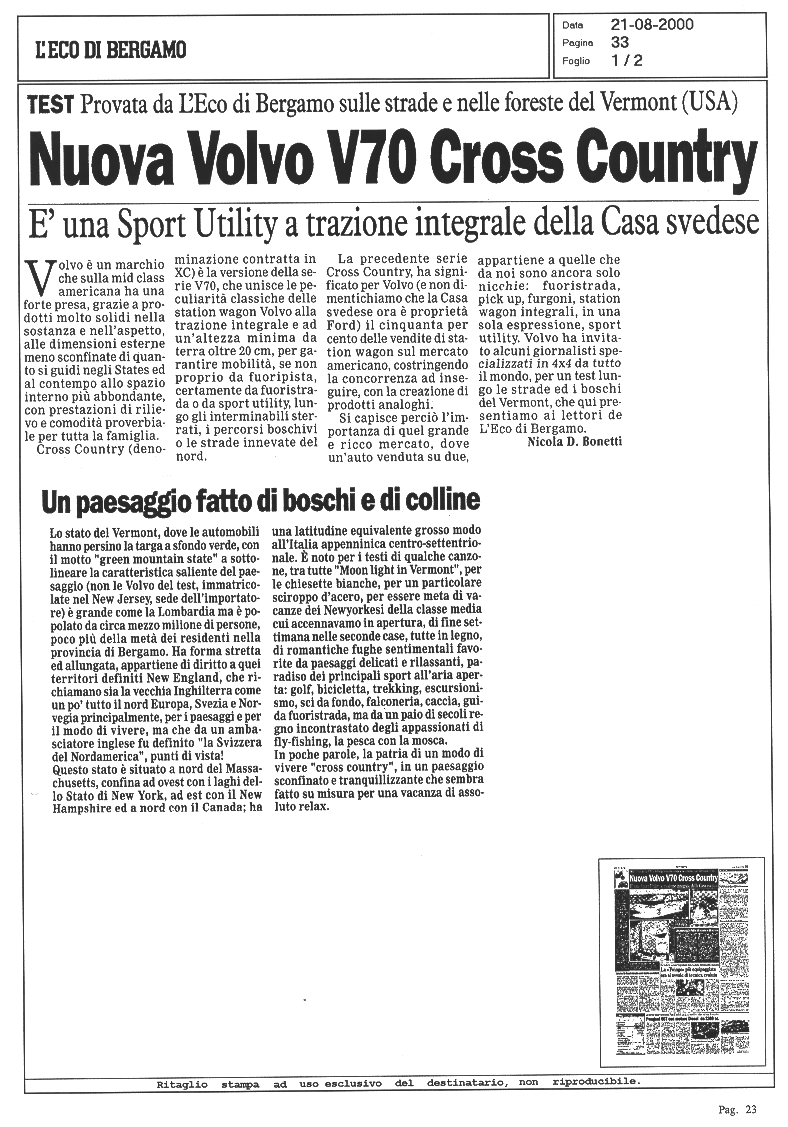 LA VOLVO V70 XC CROSS COUNTRY SUI GIORNALI... |