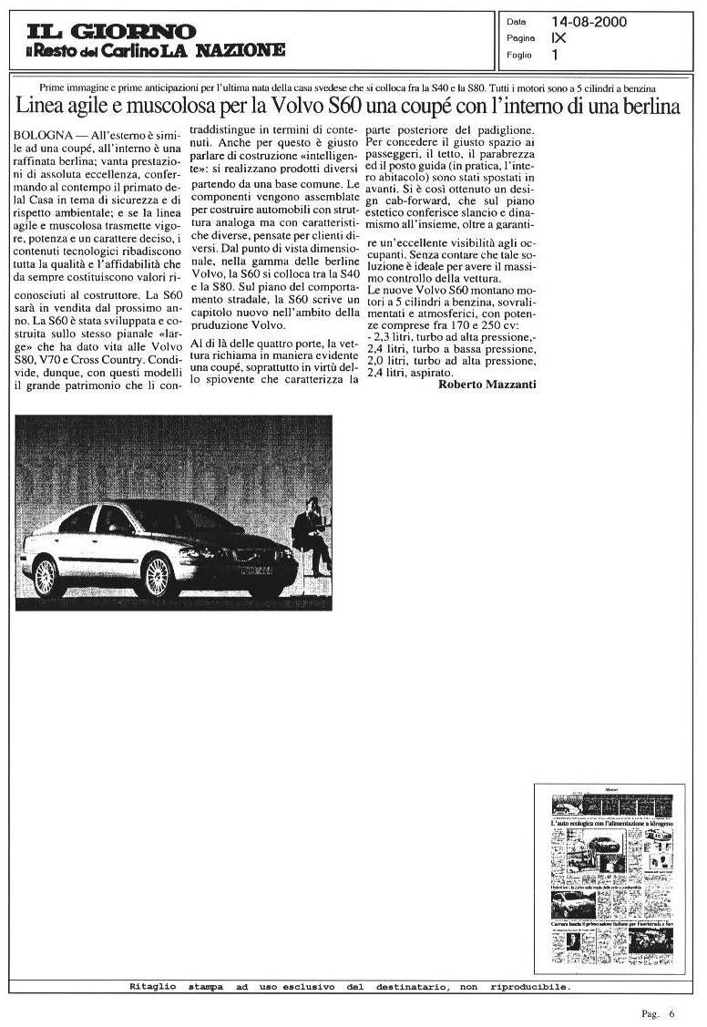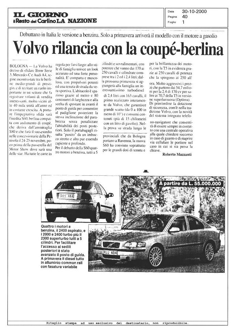 | L'analisi numerica della Volvo S60 | I TOPTEN | La Volvo V70 XC Cross Country | La Rassegna TV |
