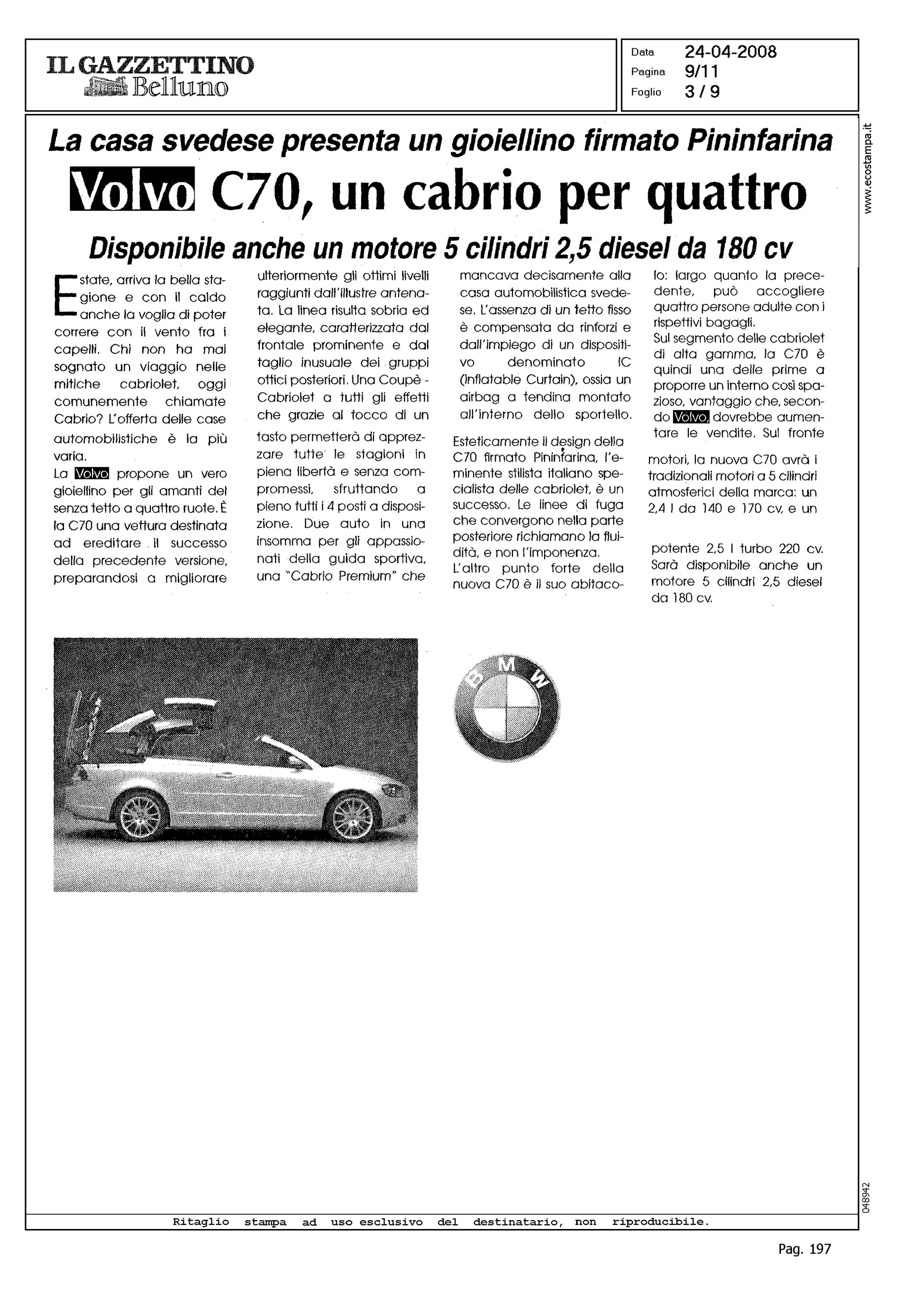 Line: Corporate Model: C70 Convertible Subject: