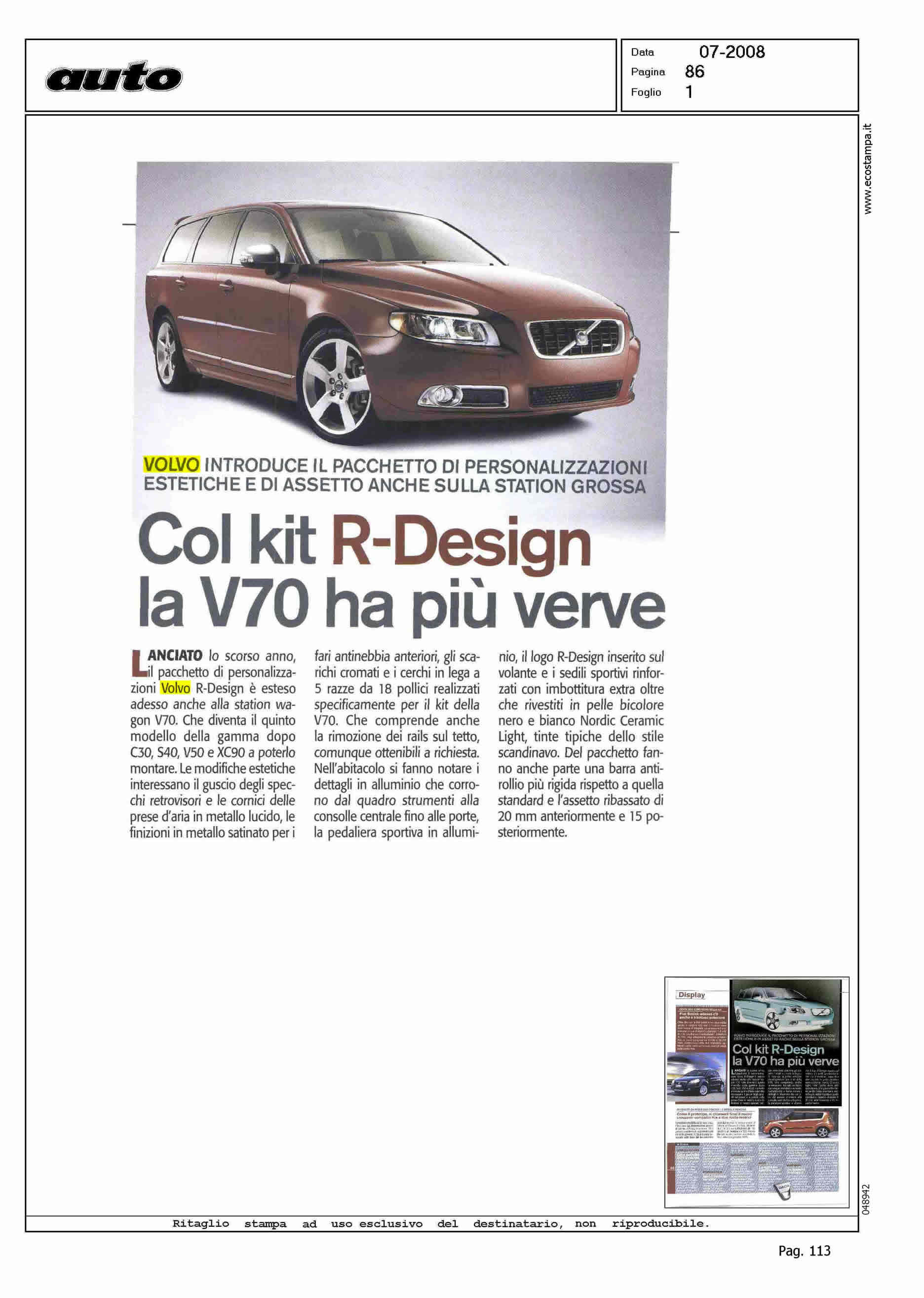Line: Corporate Model: V70 Subject: