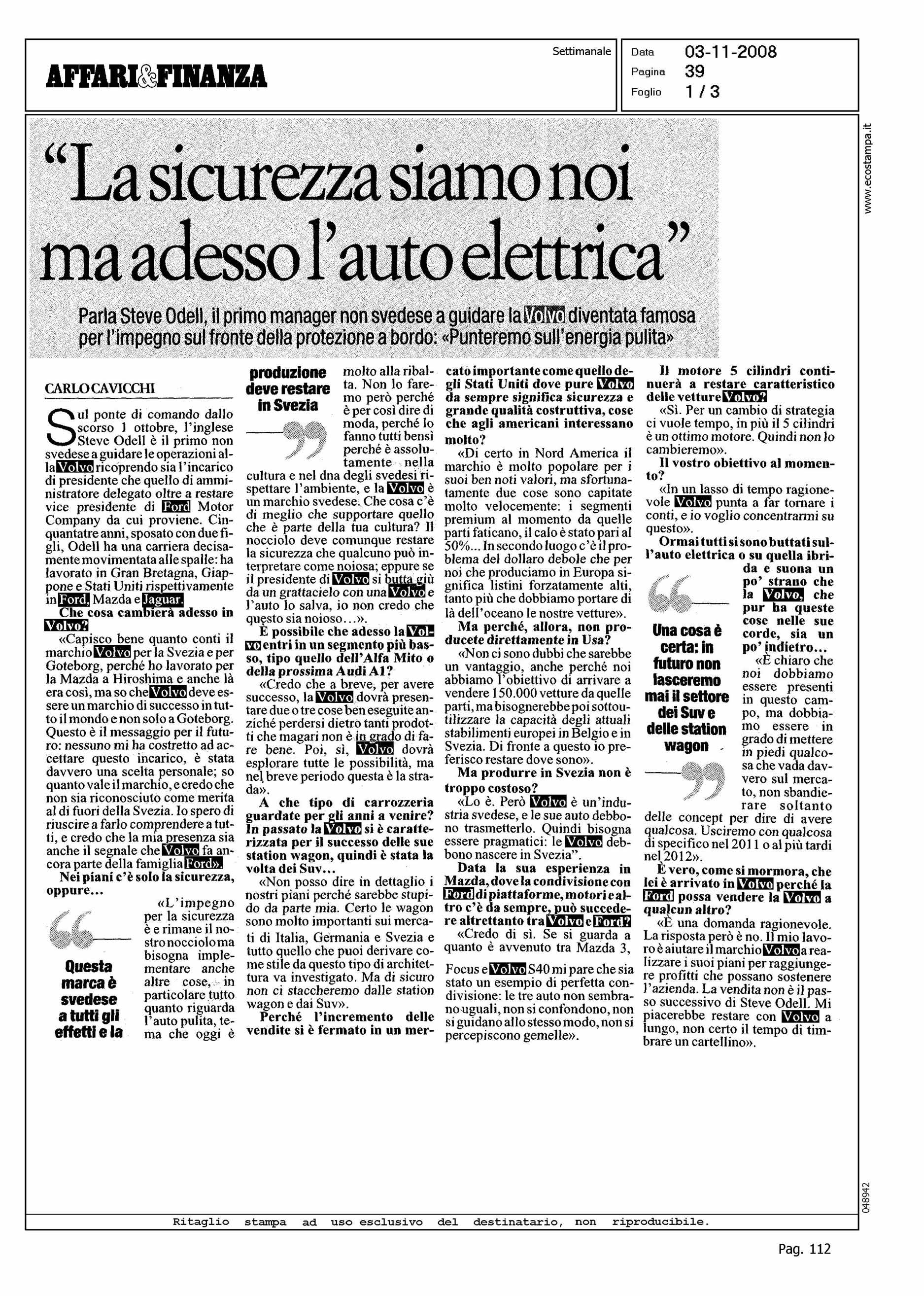 Title: "LA SICUREZZA SIAMO NOI MA ADESSO L'AUTO ELETTRICA"