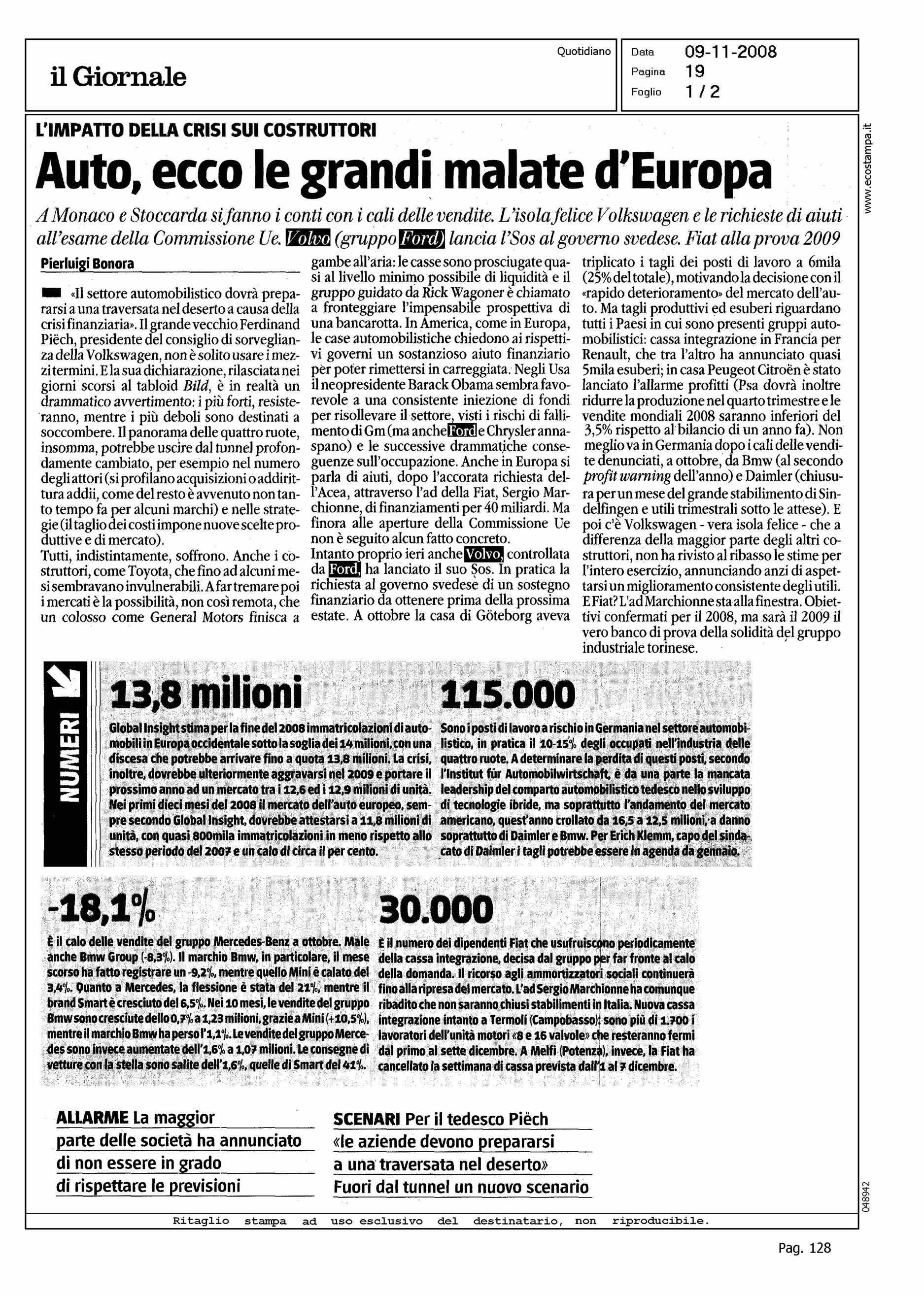 Author: BONORA, PIERLUIGILine: Corporate Model: Corporate Subject: PRODUCT PRESENTATION Title: AUTO, ECCO LE GRANDI MALATE D'EUROPAHighlight: