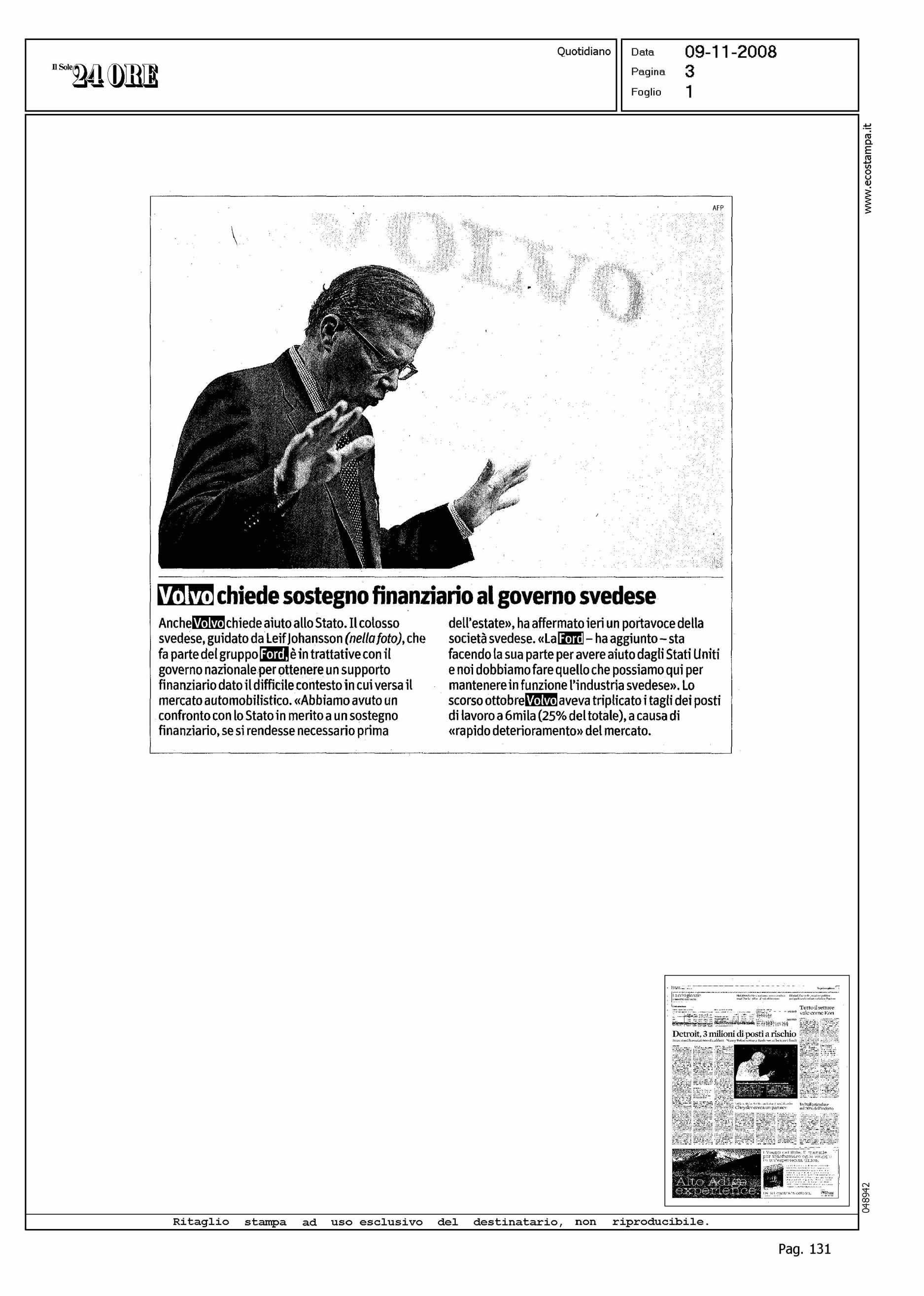 Author: Line: Corporate Model: Corporate Subject: PRODUCT PRESENTATION Title: VOLVO CHIEDE SOSTEGNO FINANZIARIO AL GOVERNO SVEDESEHighlight: