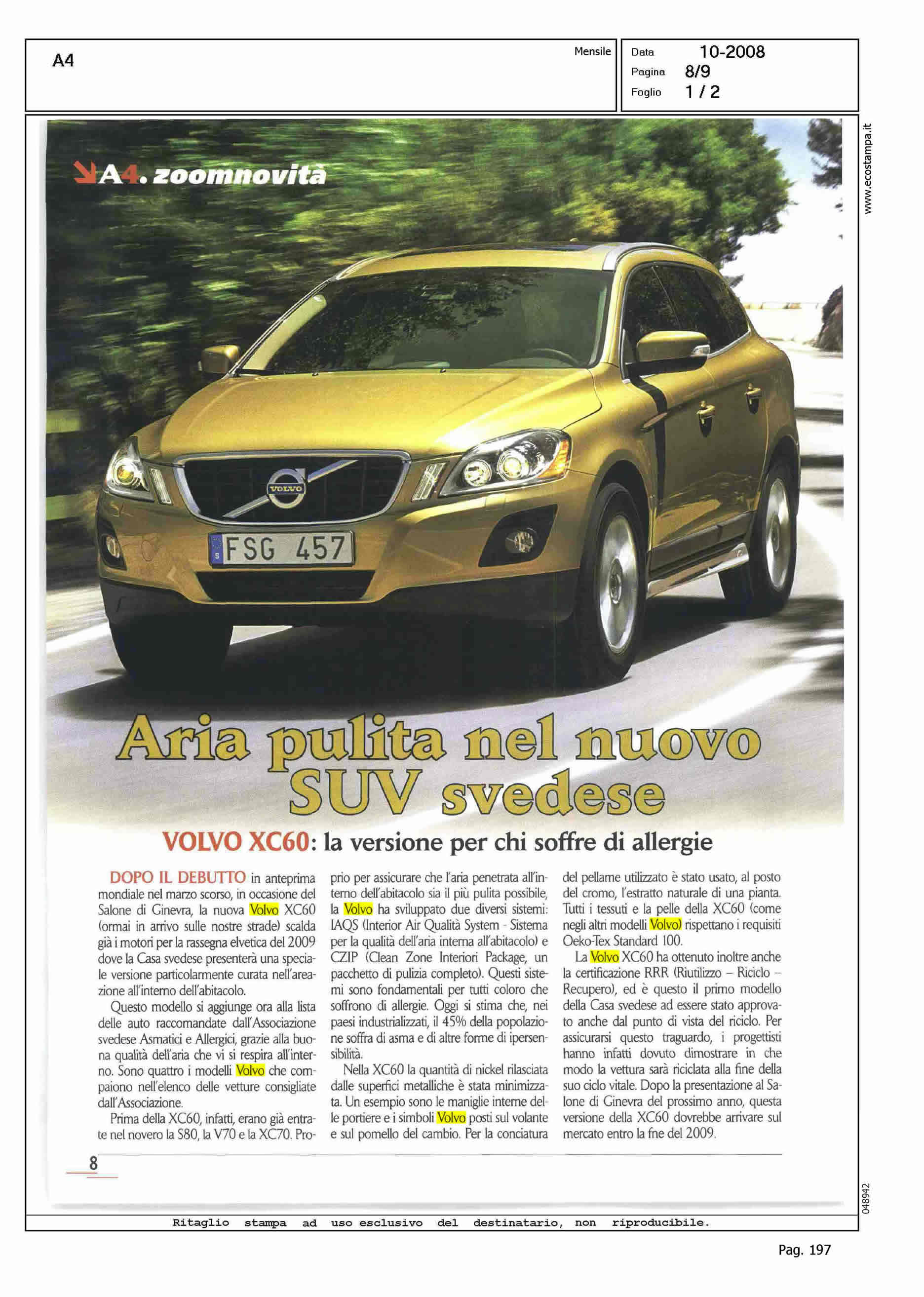 Author: Line: XC60 Model: Subject: TEST-DRIVE Title: ARIA PULITA NEL NUOVO SUV SVEDESEHighlight: