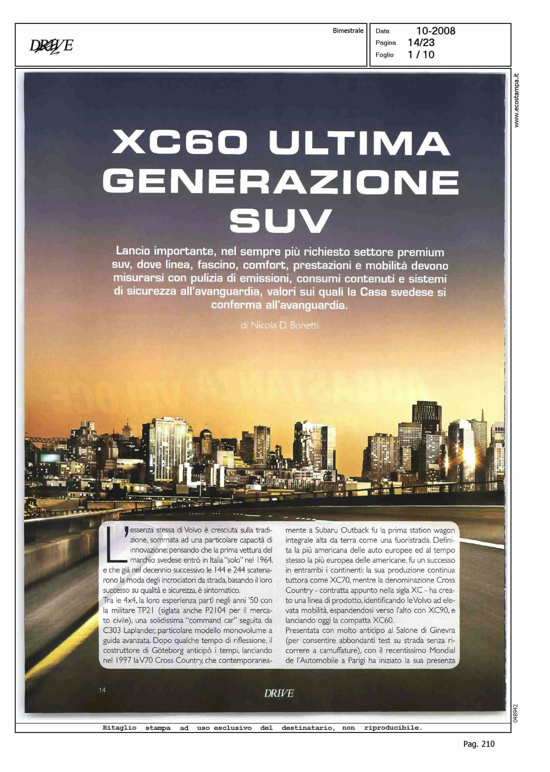 Author: BONETTI, NICOLA D.Line: XC60 Model: Subject: PRODUCT PRESENTATION Title: XC60 ULTIMA GENERAZIONE SUVHighlight: