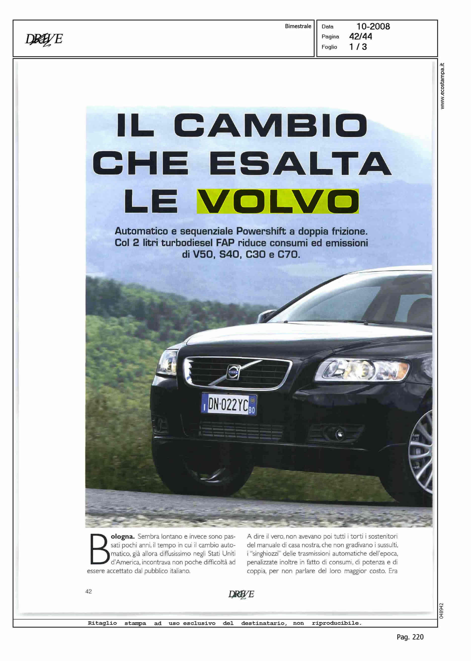 Author: Line: Corporate Model: S40-V50 Subject: POWERSHIFT Title: IL CAMBIO CHE ESALTA LE VOLVOHighlight: