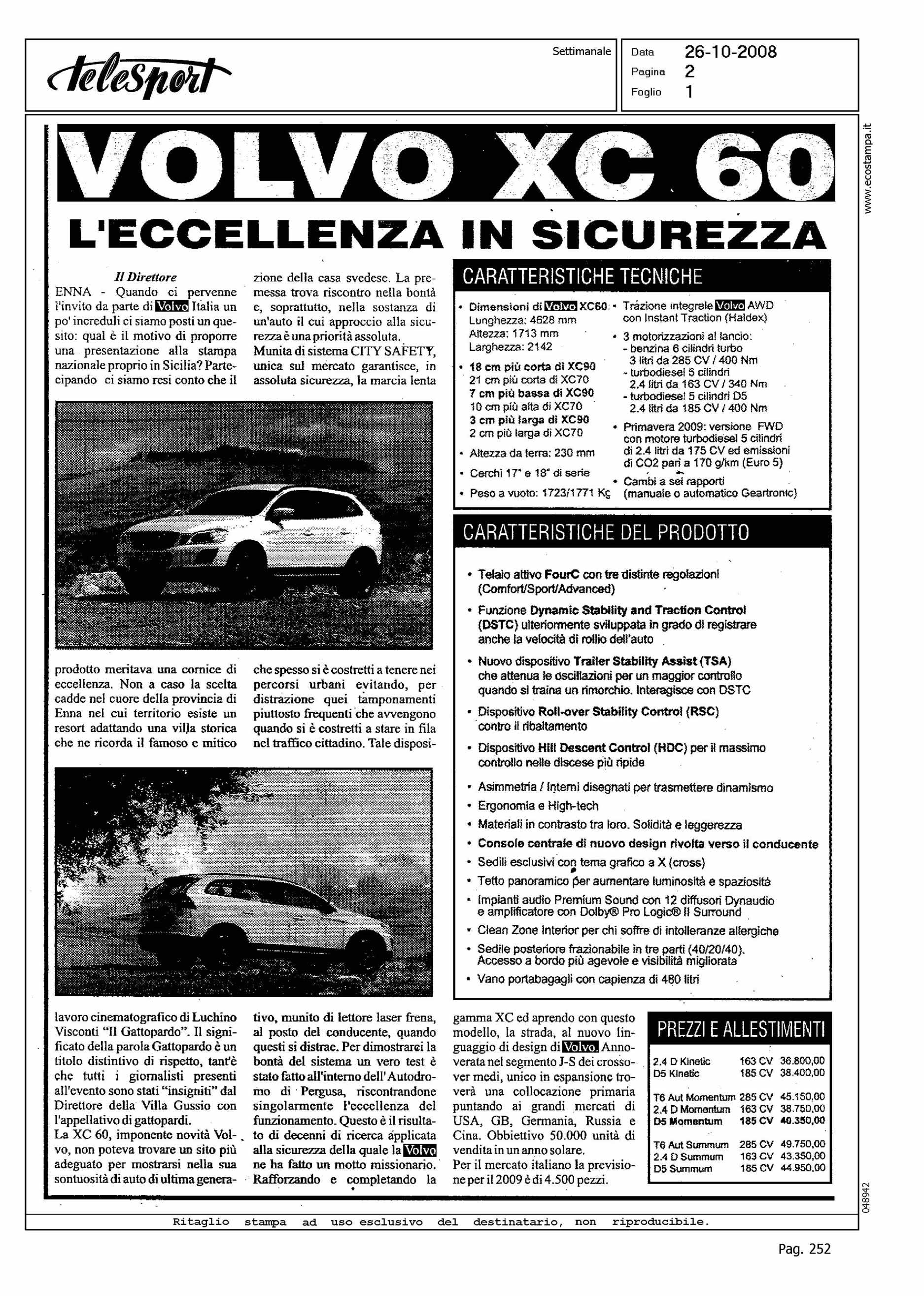 Author: Line: XC60 Model: Subject: ENNA TEST DRIVE Title: VOLVO XC60 - L'ECCELLENZA IN SICUREZZAHighlight: