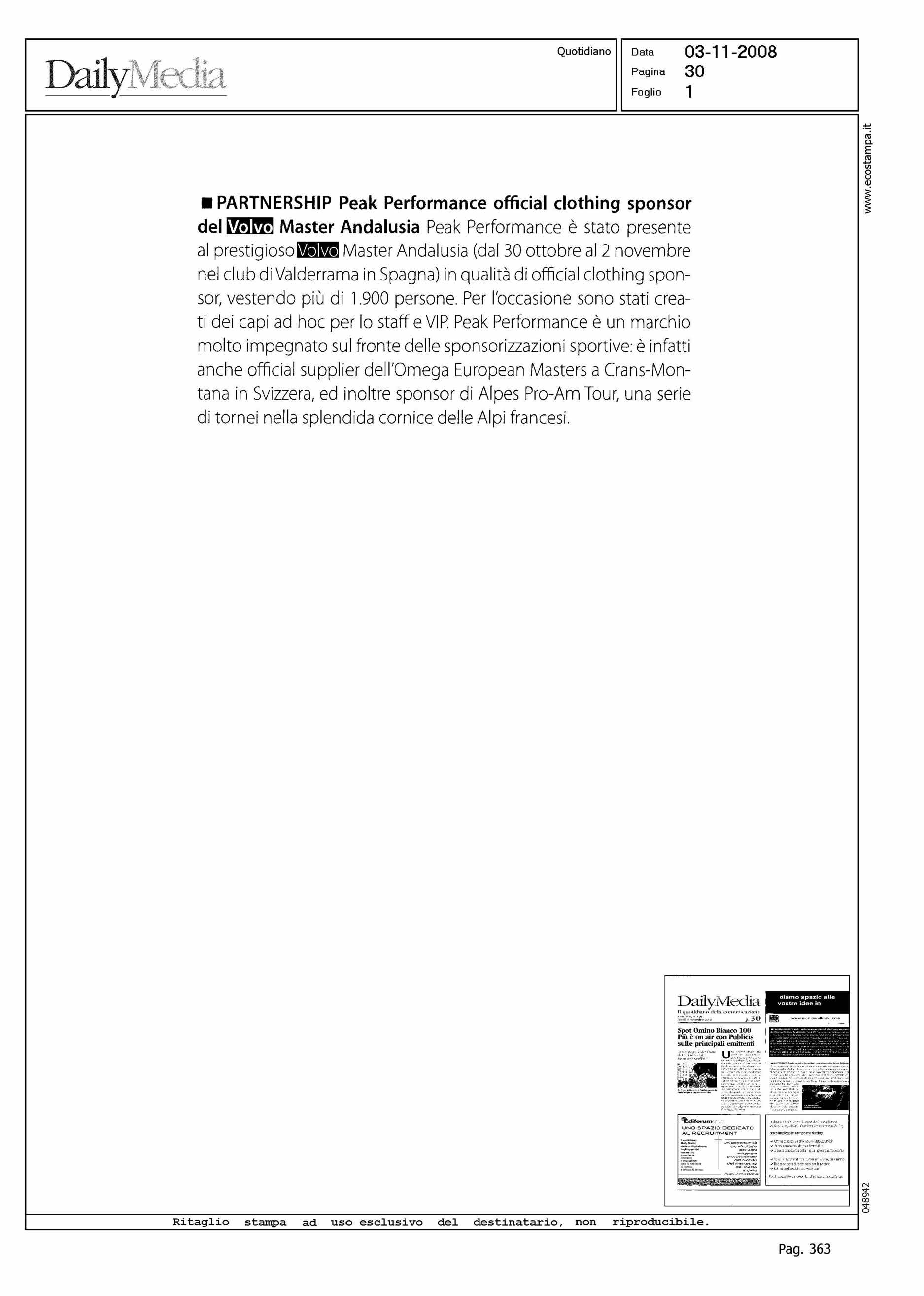 Author: Line: Corporate Model: Corporate Subject: NEWS Title: PARTNERSHIP. PEAK PERFORMANCE OFFICIAL CLOTHING SPONSOR DEL VOLVO MASTER ANDALUSIAHighlight:
