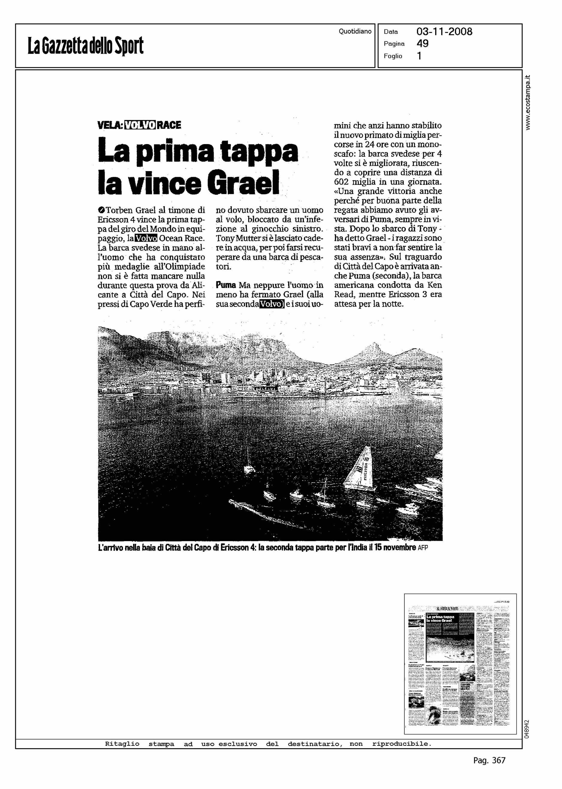 Author: Line: Corporate Model: Corporate Subject: VOLVO OCEAN RACE Title: LA PRIMA TAPPA LA VINCE GRAELHighlight: