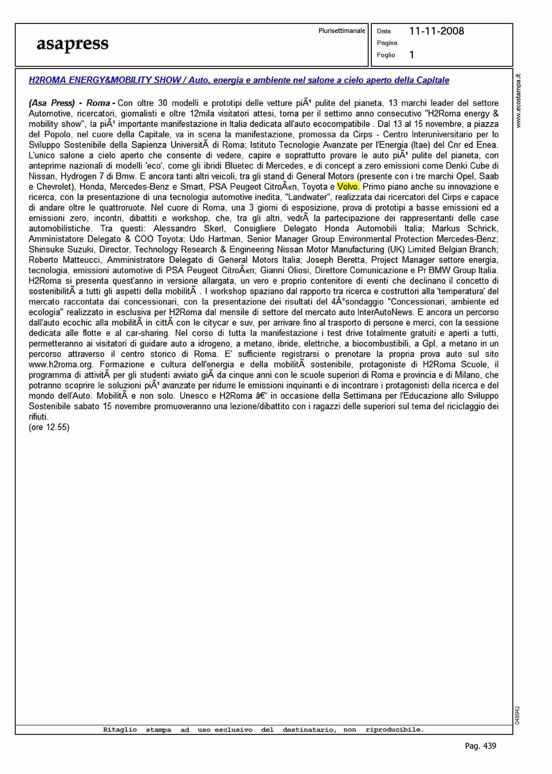 Author: Line: Corporate Model: Corporate Subject: NEWS Title: H2ROMA, ENERGY&MOBILITY SHOWHighlight: