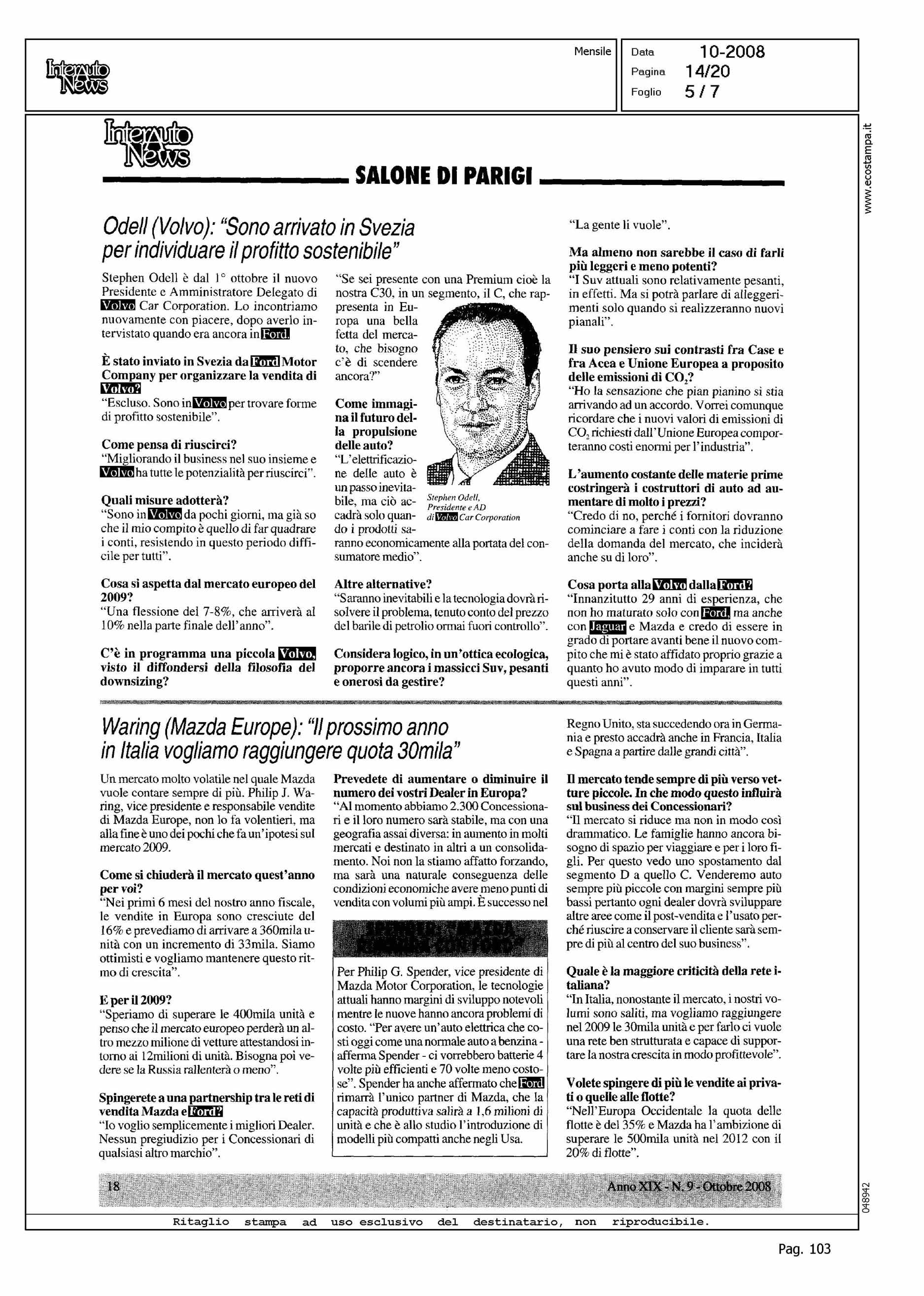 Author: Line: Corporate Model: Corporate Subject: NEWS Title: ODELL (VOLVO): "SONO ARRIVATO IN SVEZIA PER INDIVIDUARE IL PROFITTO SOSTENIBILE"Highlight: