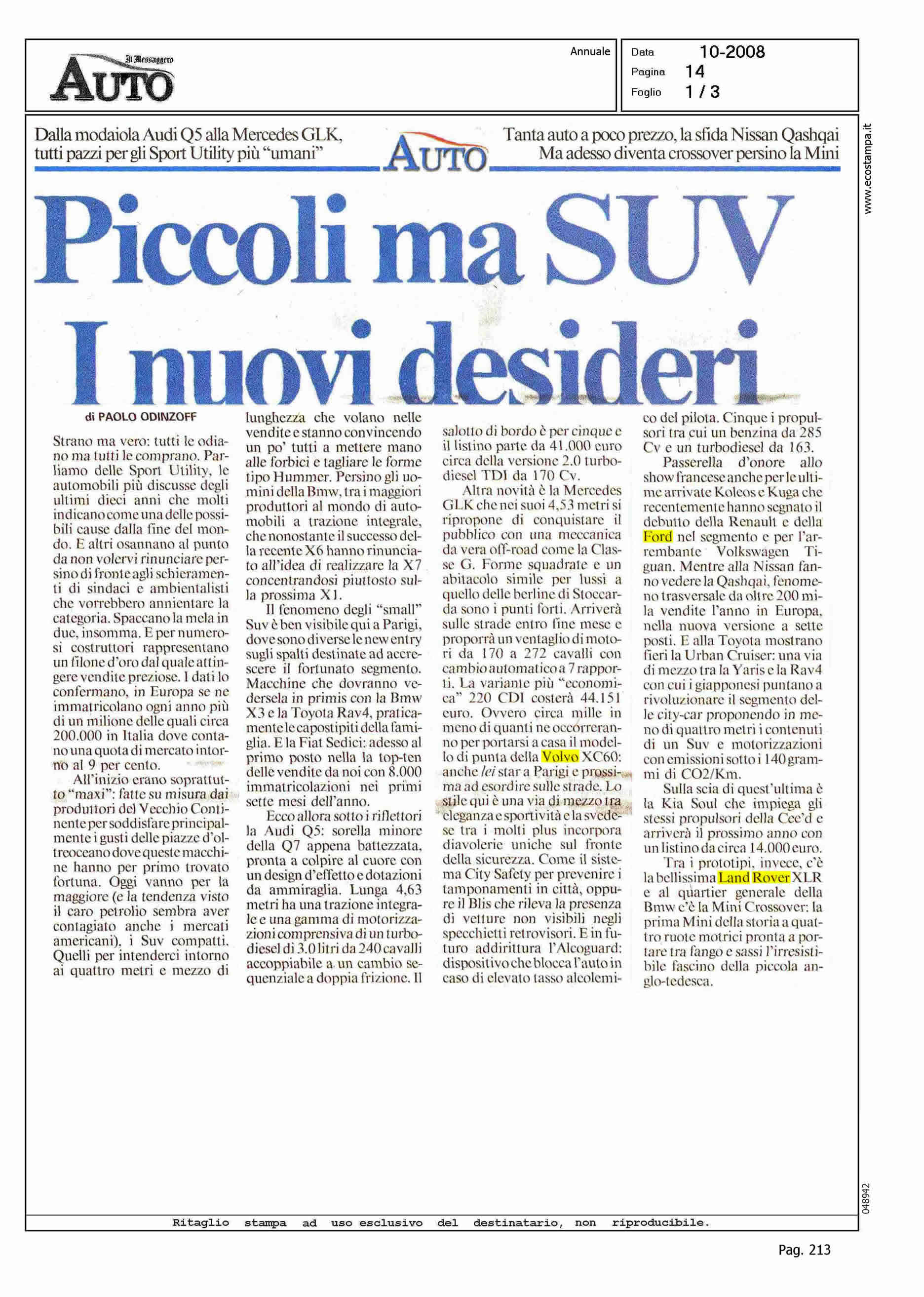 Author: ODINZOV, PAOLOLine: XC60 Model: Subject: NEWS Title: PICCOLI MA SUV - I NUOVI DESIDERIHighlight: