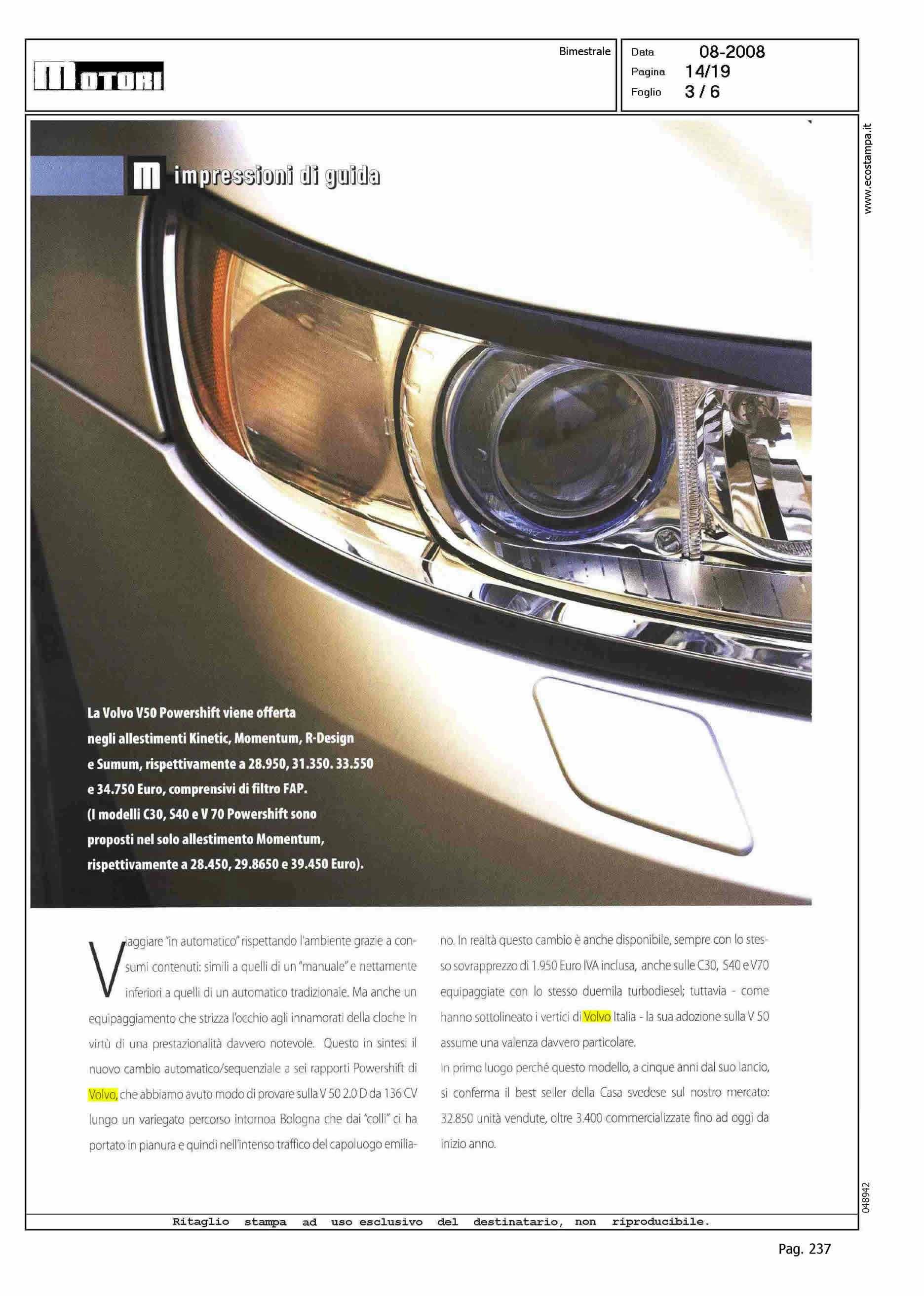 Author: Line: Corporate Model: S40-V50 Subject: POWERSHIFT Title: DIVERTIMENTO E BASSI CONSUMI IN AUTOMATICOHighlight: