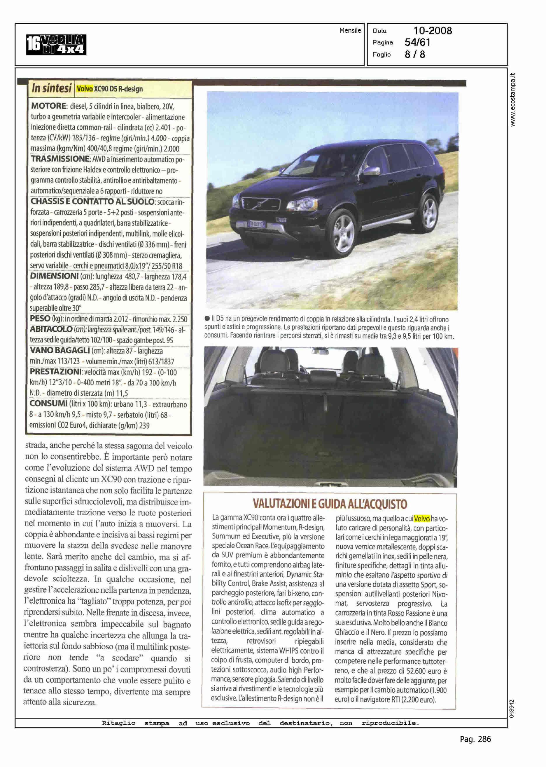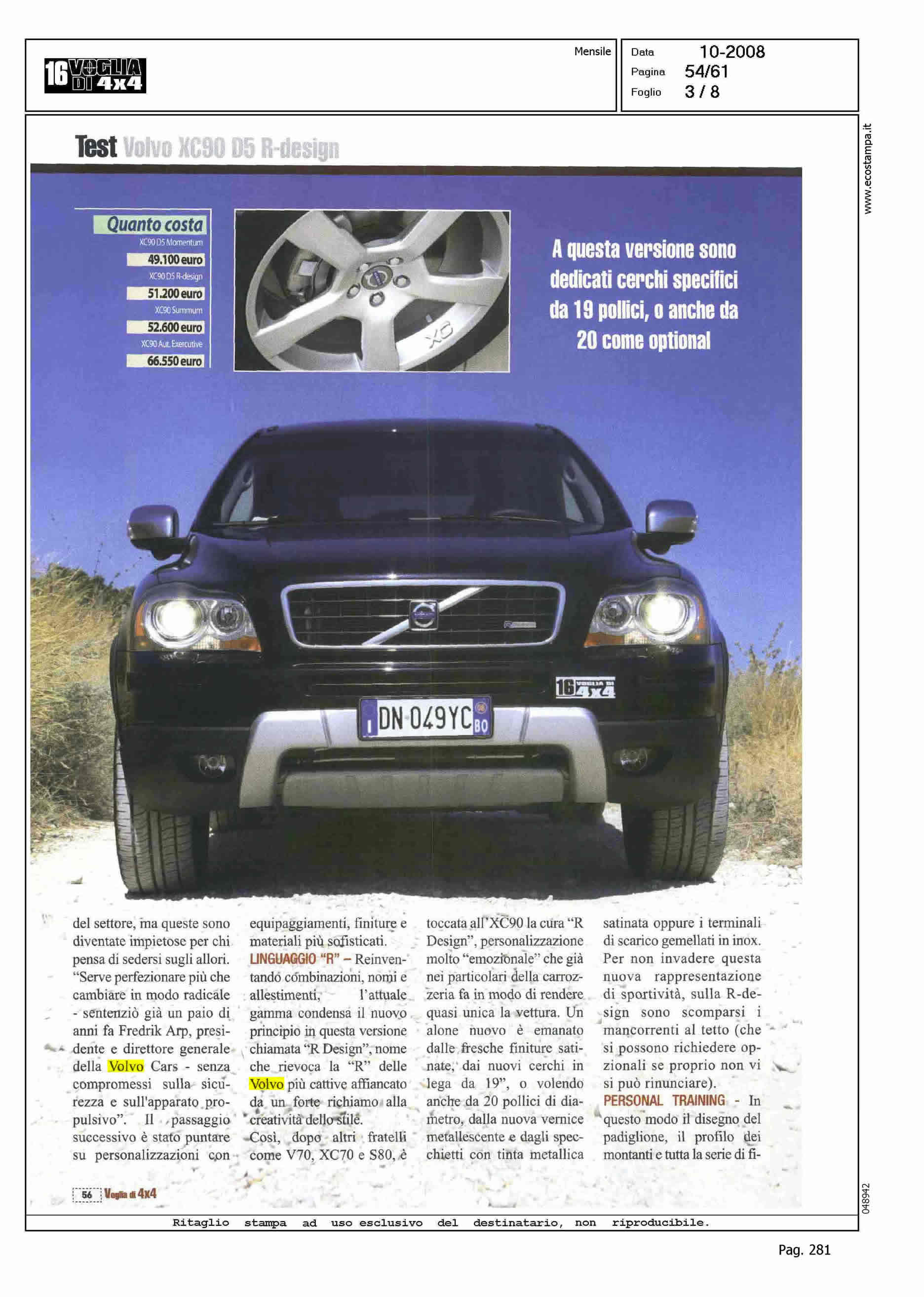 Author: ROMANO, FABRIZIOLine: Corporate Model: XC90 Subject: TEST-DRIVE Title: CURE DA TUNERHighlight: