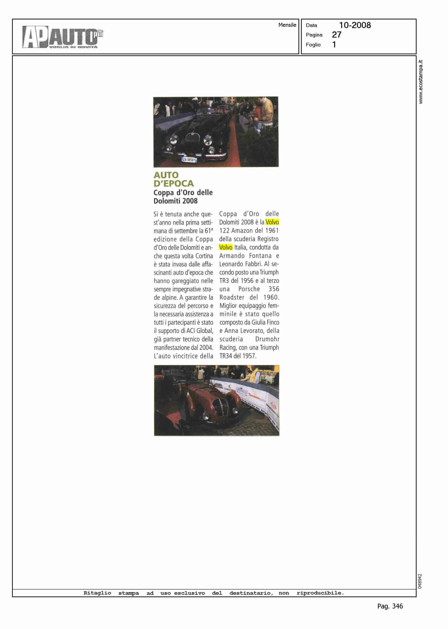Title: AUTO D'EPOCA - COPPA D'ORO DELLE DOLOMITI 2008
