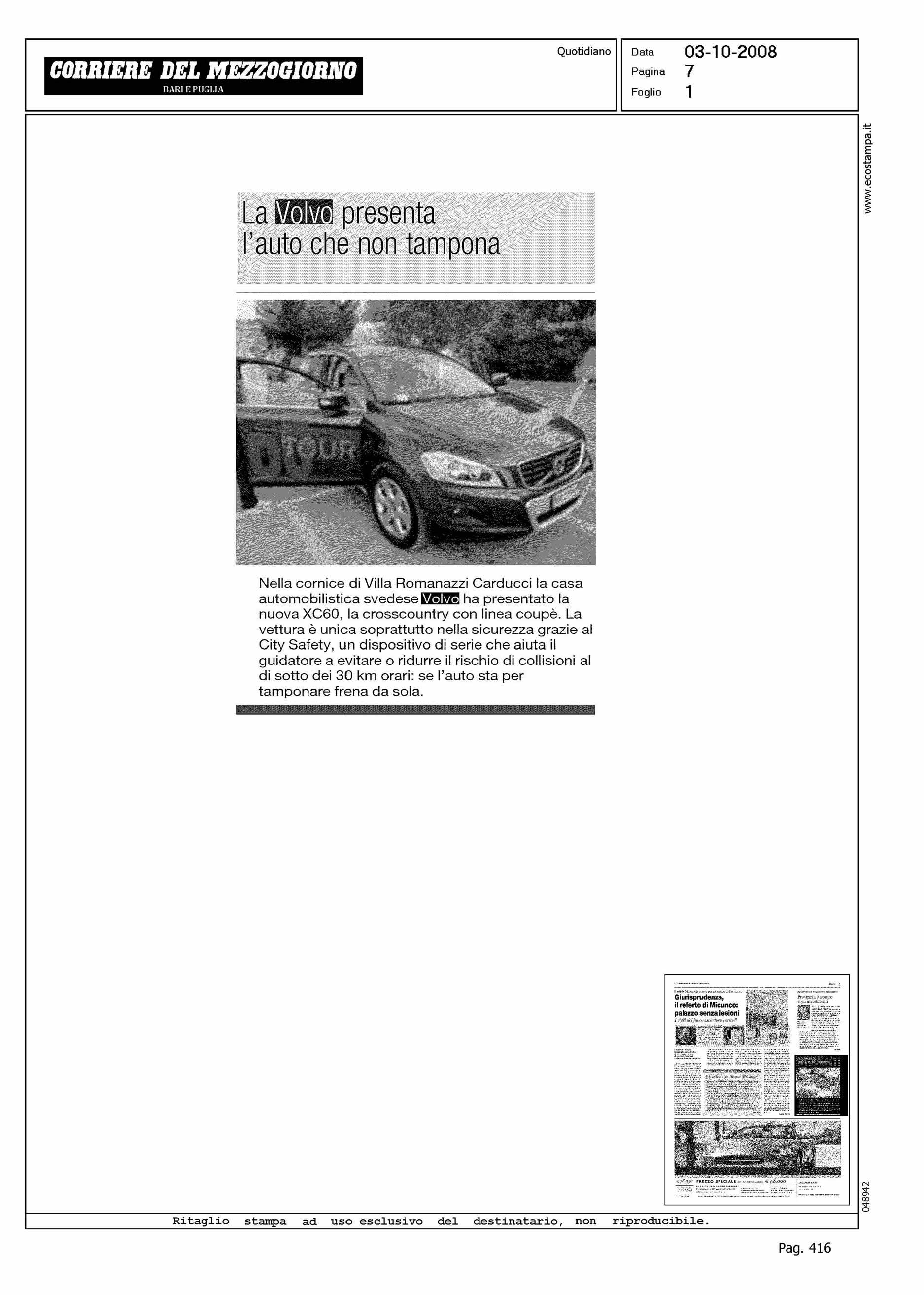 Author: Line: XC60 Model: Subject: CITY SAFETY Title: LA VOLVO PRESENTA L'AUTO CHE NON TAMPONAHighlight: