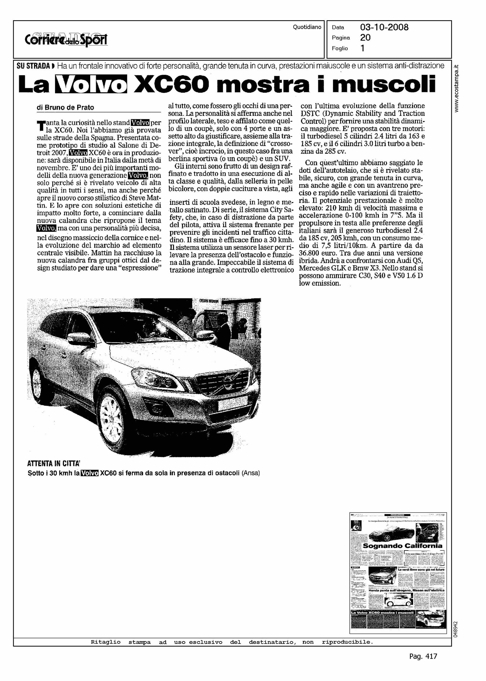 Author: DE PRATO, BRUNOLine: XC60 Model: Subject: TEST-DRIVE Title: LA VOLVO XC60 MOSTRA I MUSCOLIHighlight: