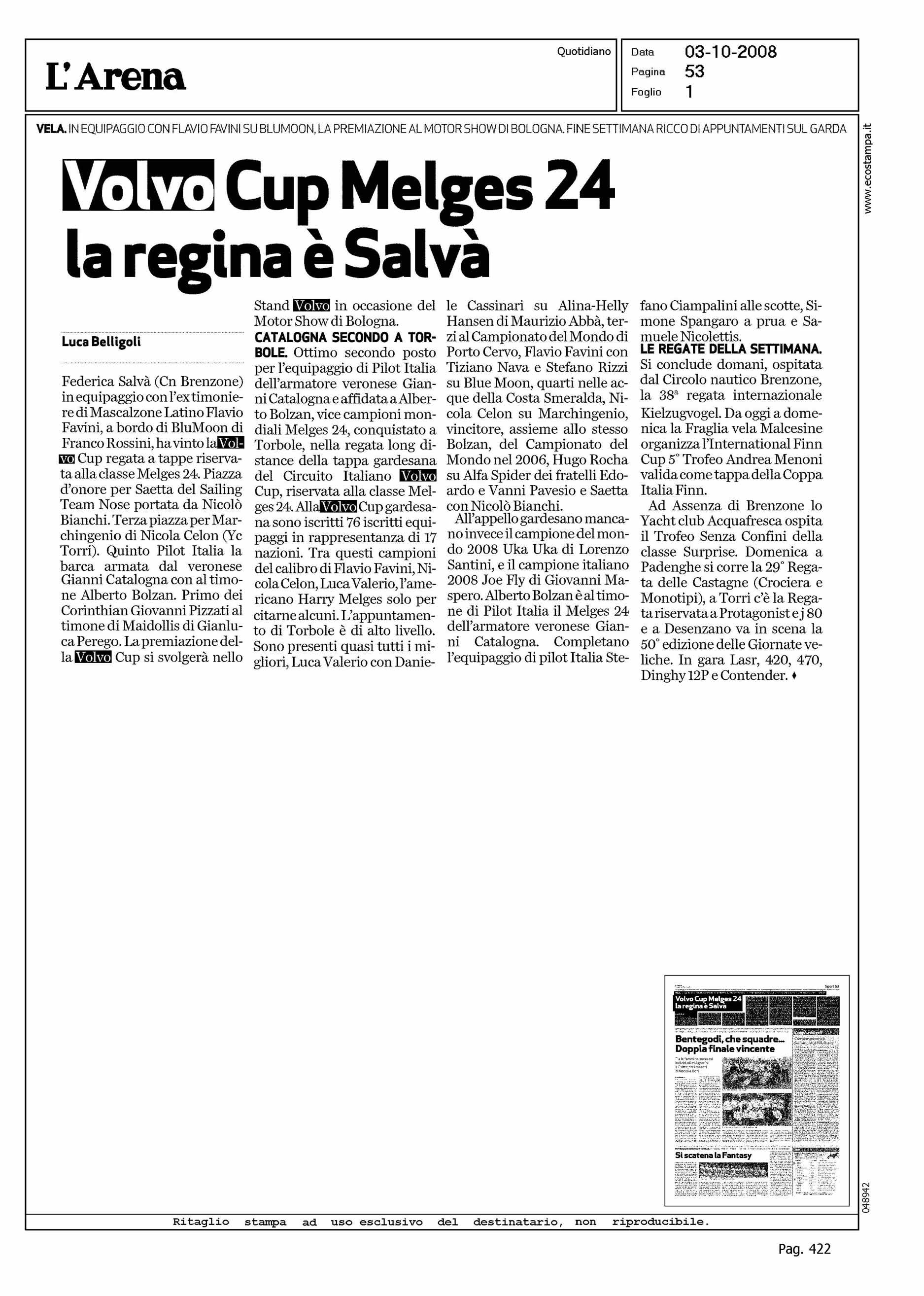 Author: BELLIGOLI, LUCALine: Corporate Model: Corporate Subject: NEWS Title: VOLVO CUP MELGES 24 LA REGINA E' SALVA'Highlight: