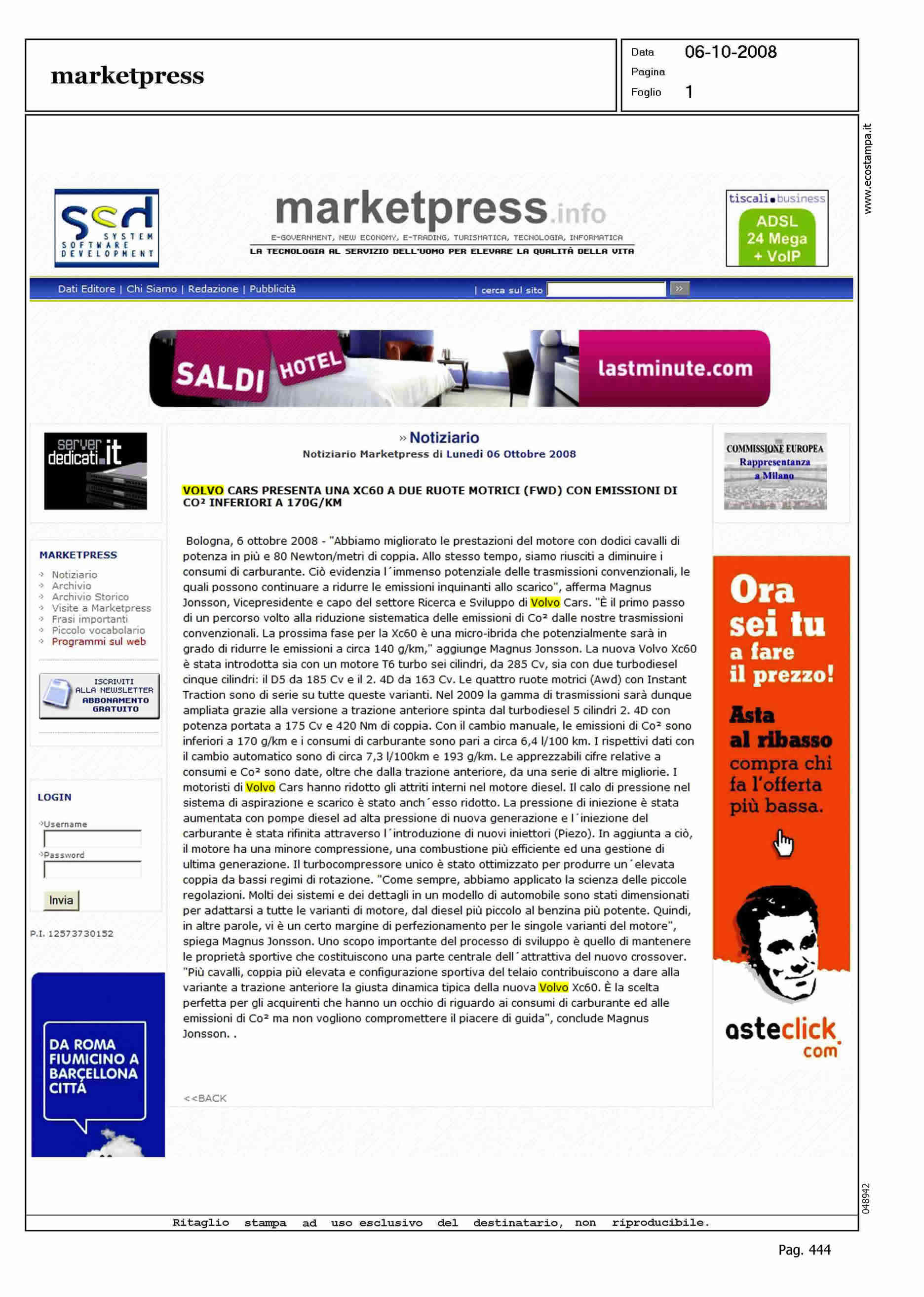 Author: Line: XC60 Model: Subject: NEWS Title: VOLVO CARS PRESENTA UNA XC60 A DUE RUOTE MOTRICI (FWD) CON EMISSIONI DI CO2 INFERIORI A 170G/KMHighlight: