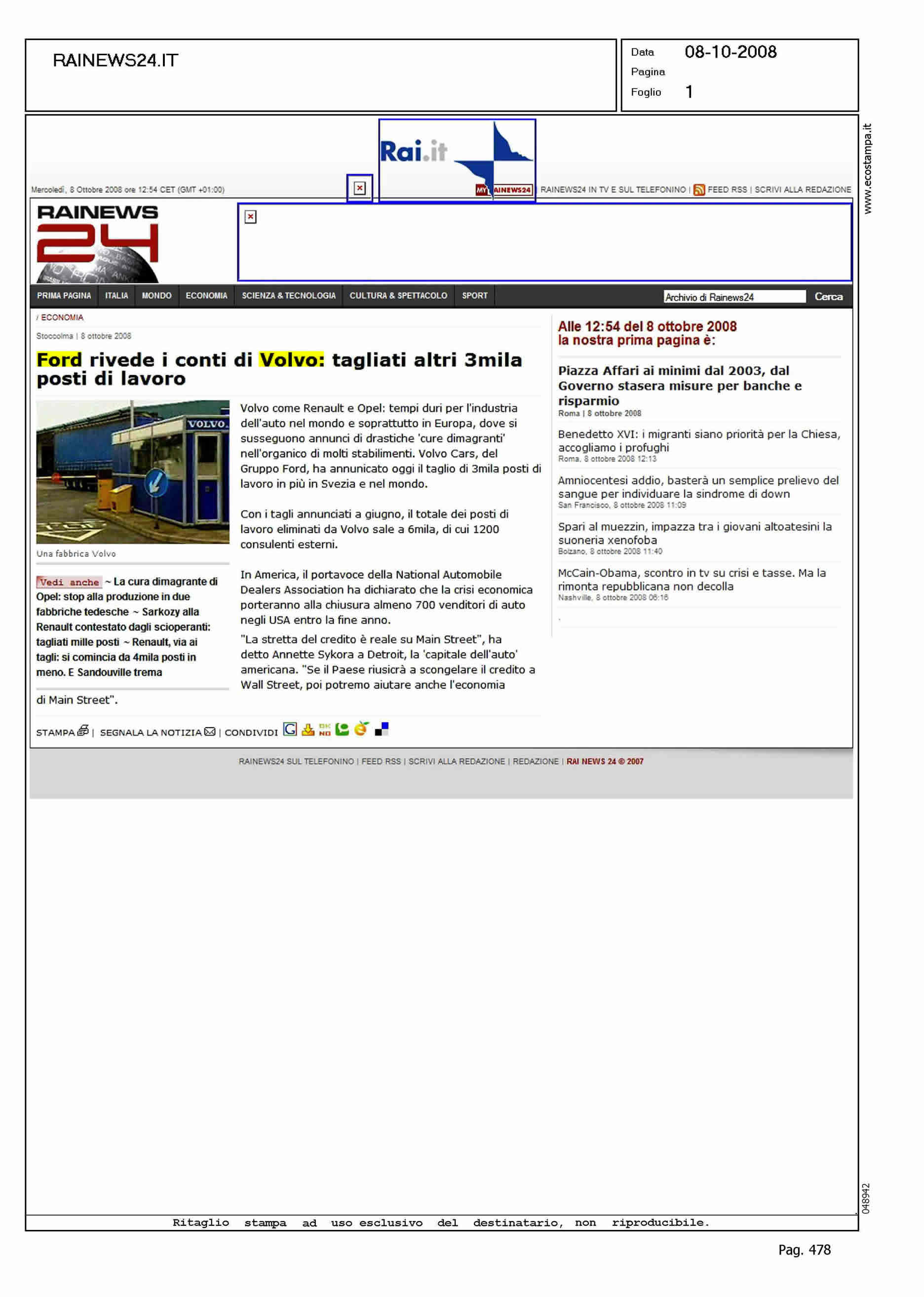 Author: Line: Corporate Model: Corporate Subject: NEWS Title: FORD RIVEDE I CONTI DI VOLVO: TAGLIATI ALTRI 3MILA POSTI DI LAVOROHighlight: