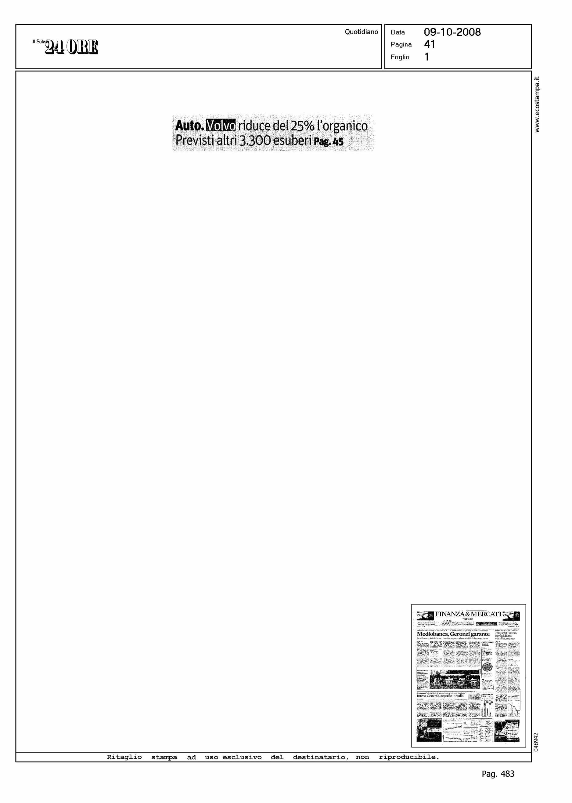 Author: Line: Corporate Model: Corporate Subject: NEWS Title: AUTO. VOLVO RIDUCE DEL 25% L'ORGANICO...Highlight: