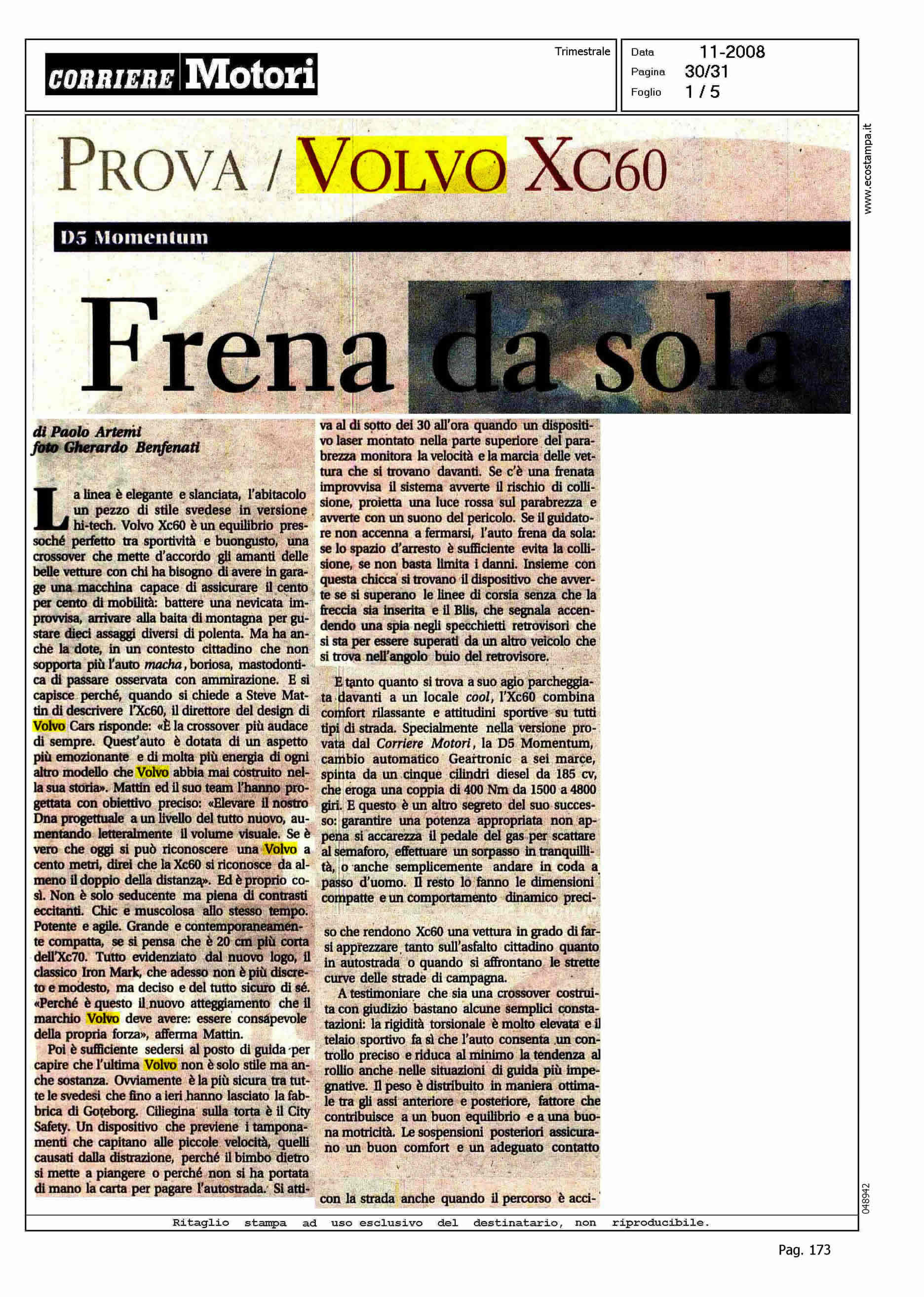 Author: ARTEMI, PAOLOLine: XC60 Model: Subject: PRODUCT PRESENTATION Title: FRENA DA SOLAHighlight: