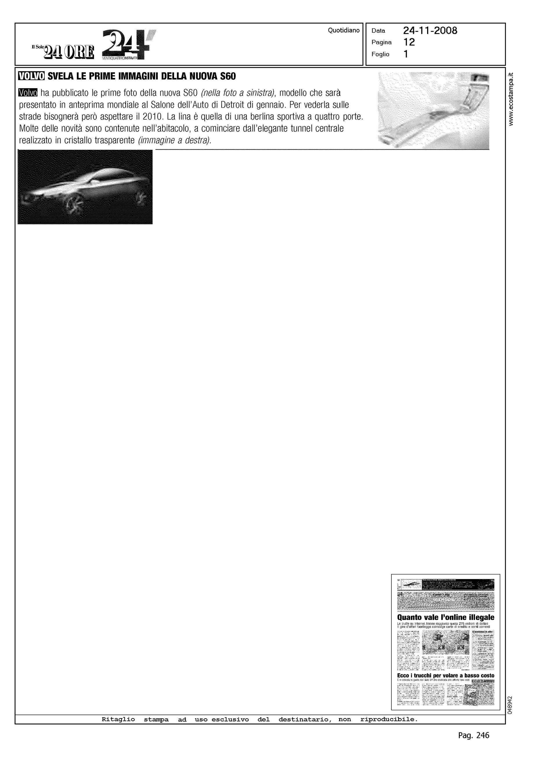 Title: VOLVO SVELA LE PRIME IMMAGINI DELLA NUOVA S60