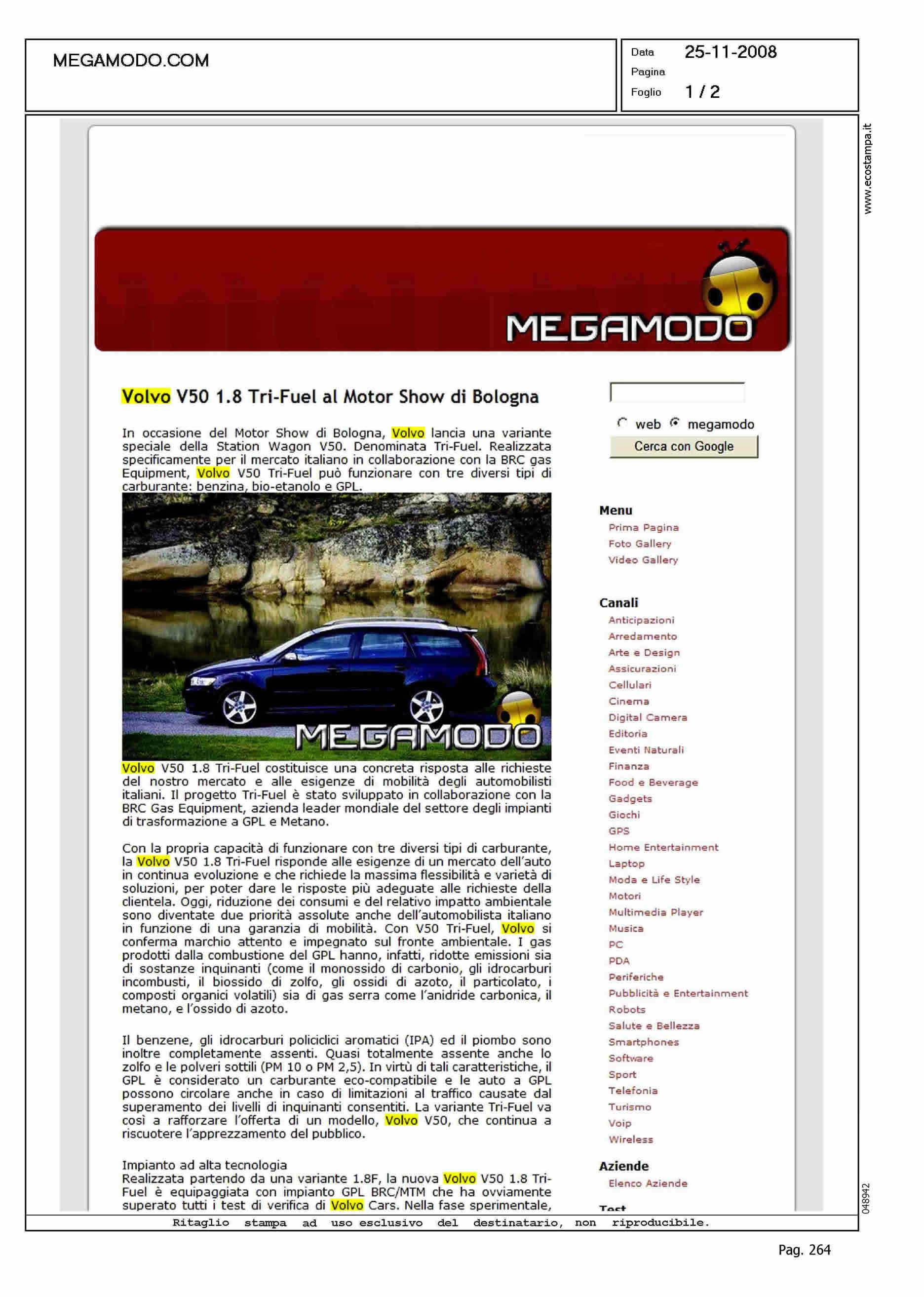 Author: Line: Corporate Model: S40-V50 Subject: PRODUCT PRESENTATION Title: VOLVO V50 1.8 TRI-FUEL AL MOTORSHOW DI BOLOGNAHighlight: