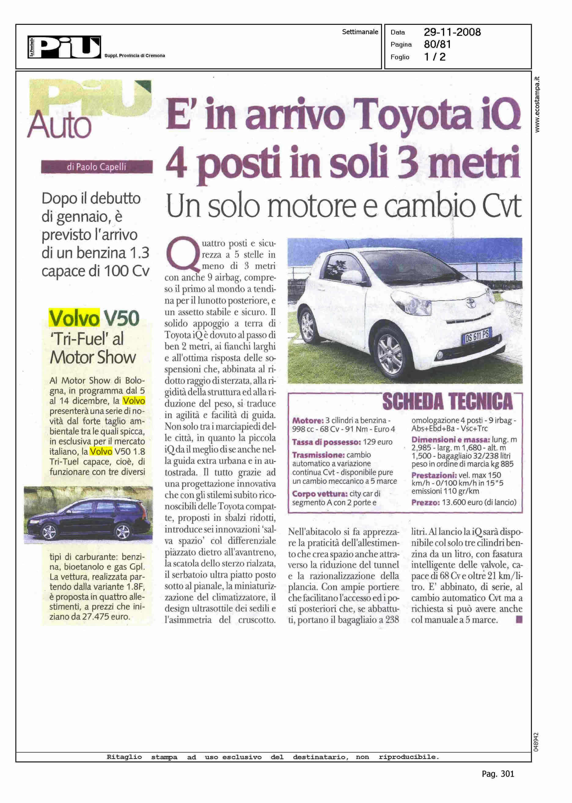 Author: Line: Corporate Model: S40-V50 Subject: PRODUCT PRESENTATION Title: VOLVO V50 - "TRI-FUEL" AL MOTORSHOWHighlight: