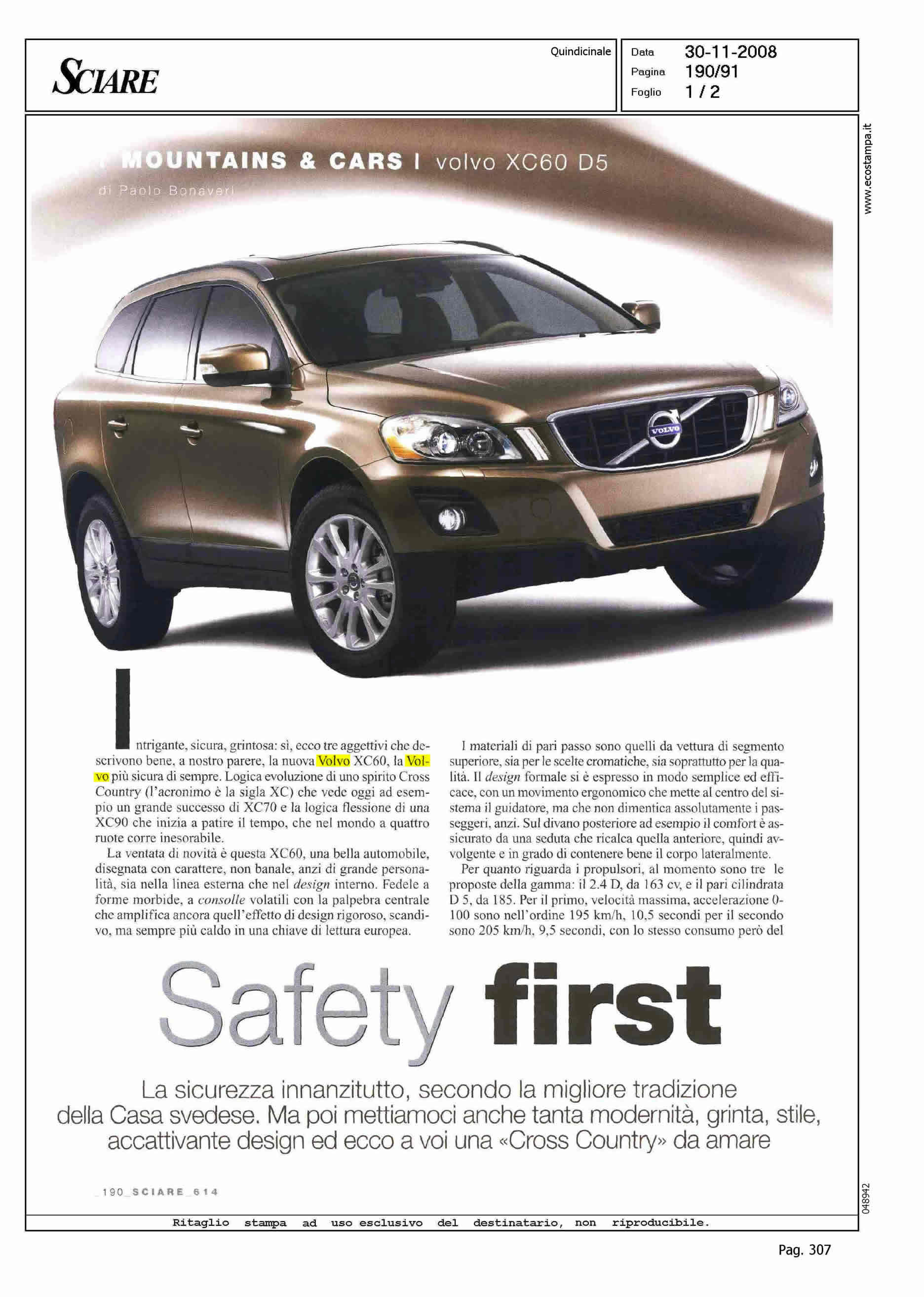 Author: BONAVERI, PAOLOLine: XC60 Model: Subject: PRODUCT PRESENTATION Title: SAFETY FIRSTHighlight: