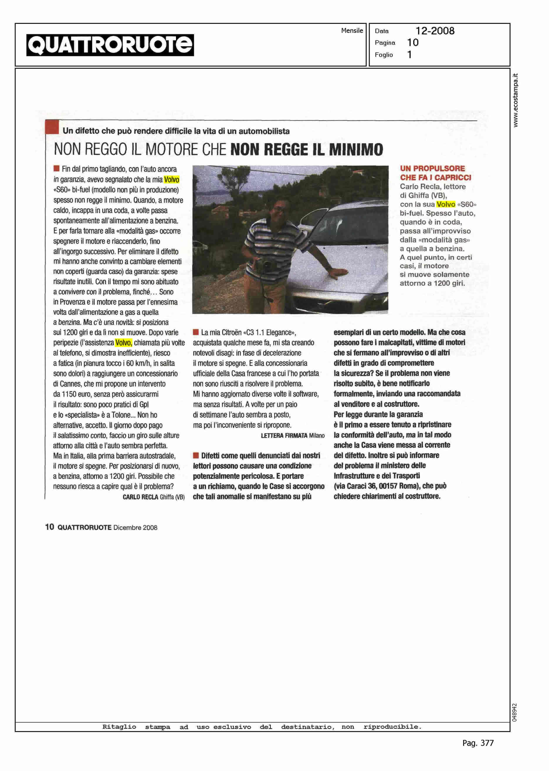 Title: NON REGGO IL MOTORE CHE NON REGGE IL MINIMO - CARLO RECLA (GHIFFA, VB) VOLVO S60 BIFUEL