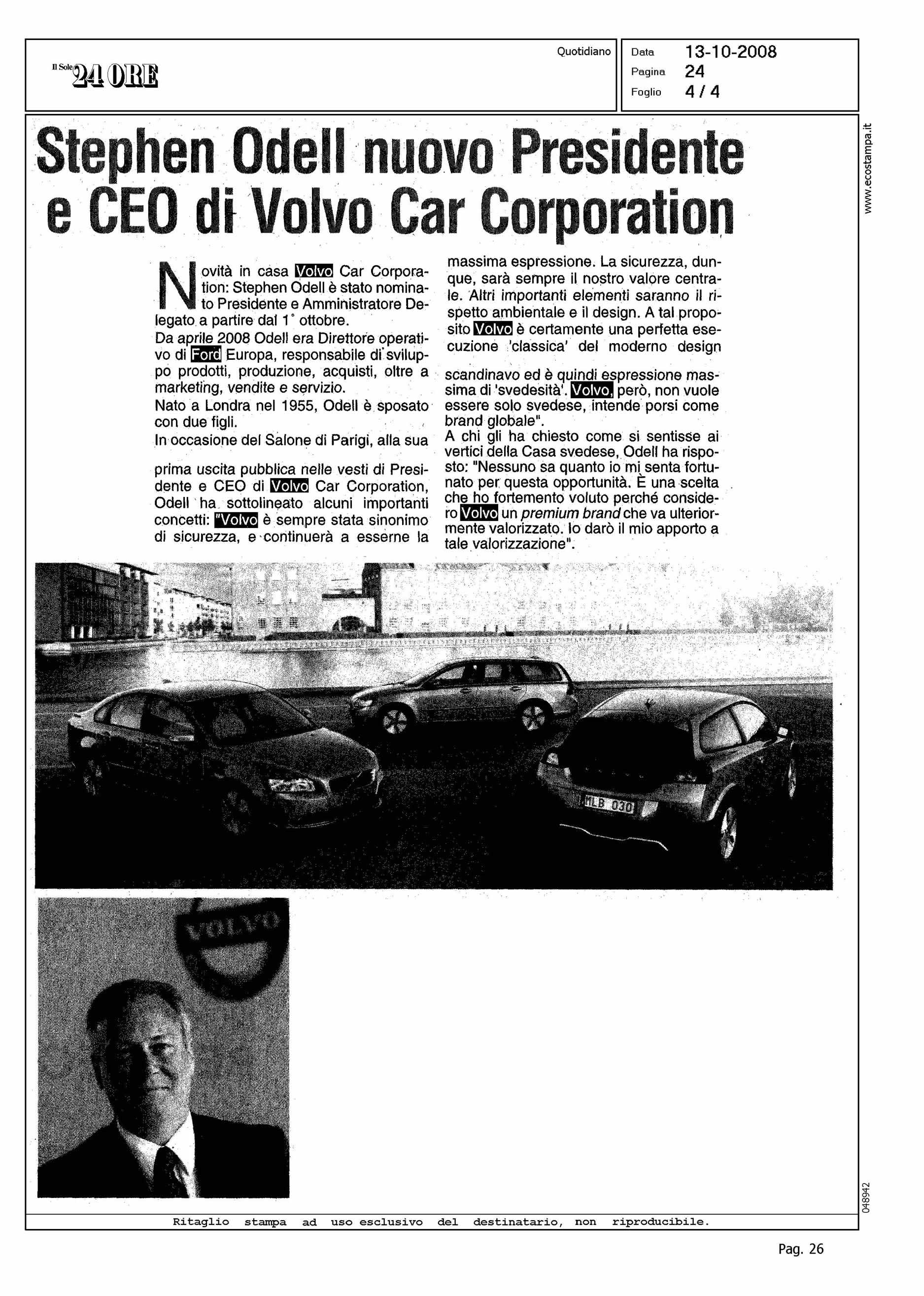Author: Line: Corporate Model: Corporate Subject: NEWS Title: STEPHEN ODELL NUOVO PRESIDENTE E CEO DI VOLVO CAR CORPORATIONHighlight: