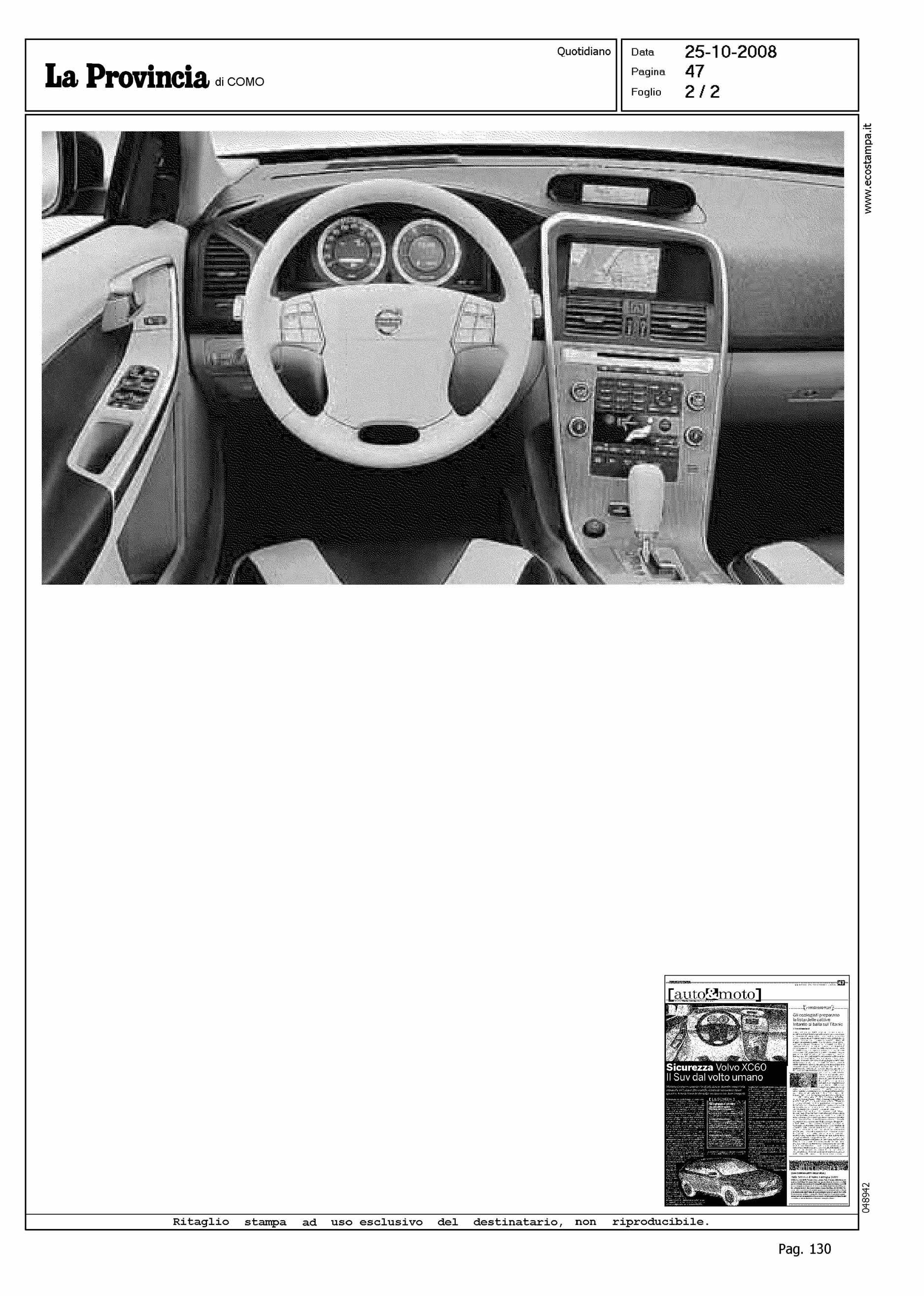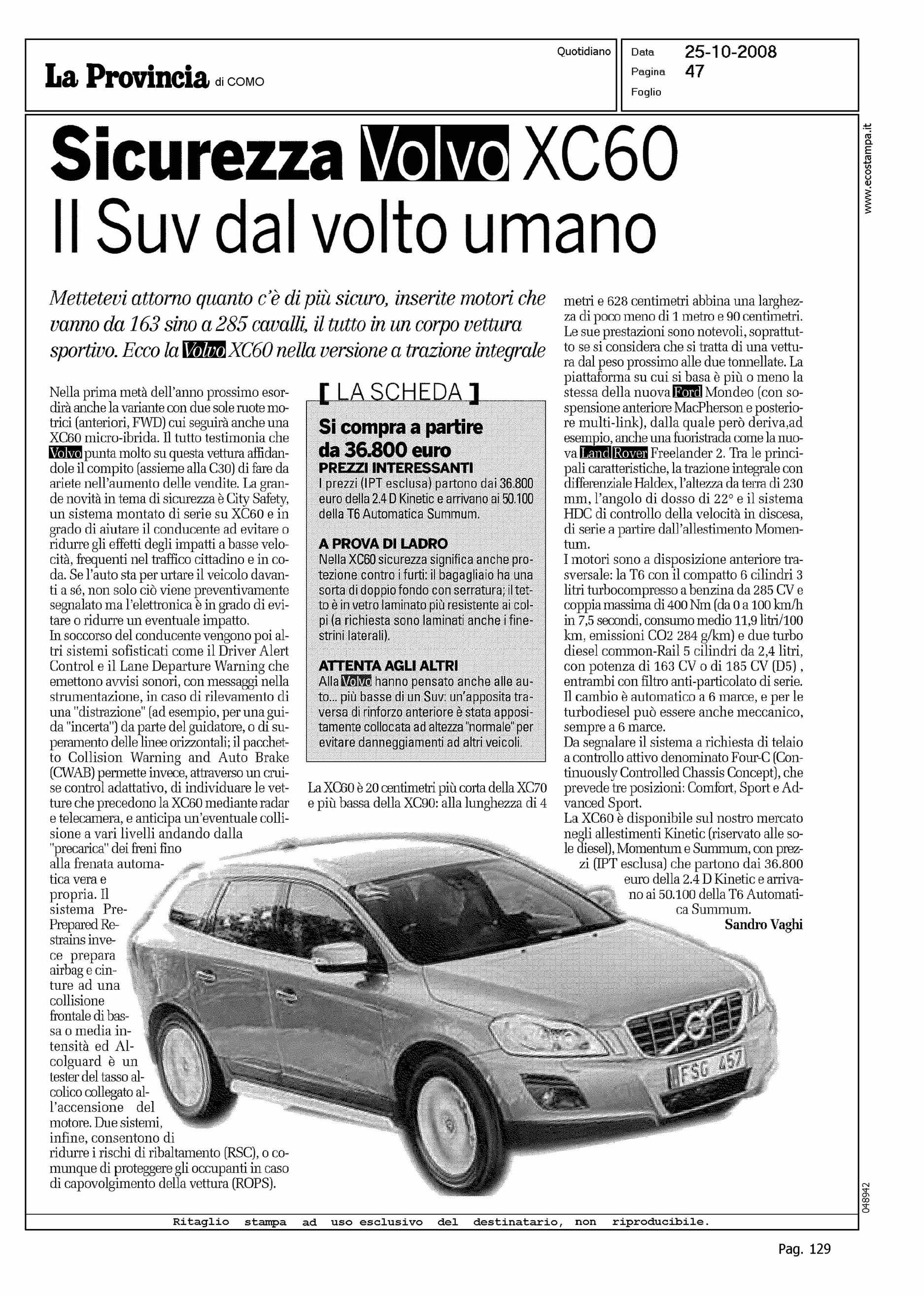 Author: VAGHI, SANDROLine: XC60 Model: Subject: PRODUCT PRESENTATION Title: SICUREZZA VOLVO XC60 - IL SUV DAL VOLTO UMANOHighlight: