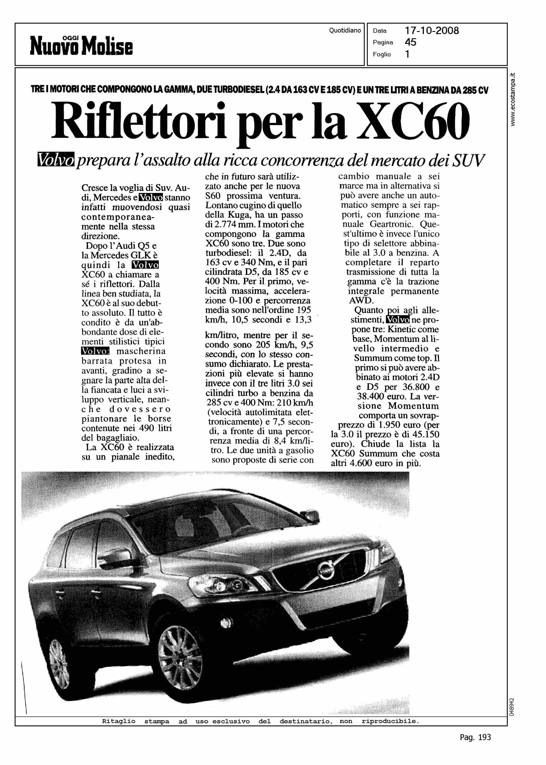 Author: Line: XC60 Model: Subject: PRODUCT PRESENTATION Title: RIFLETTORI PER LA XC60Highlight: